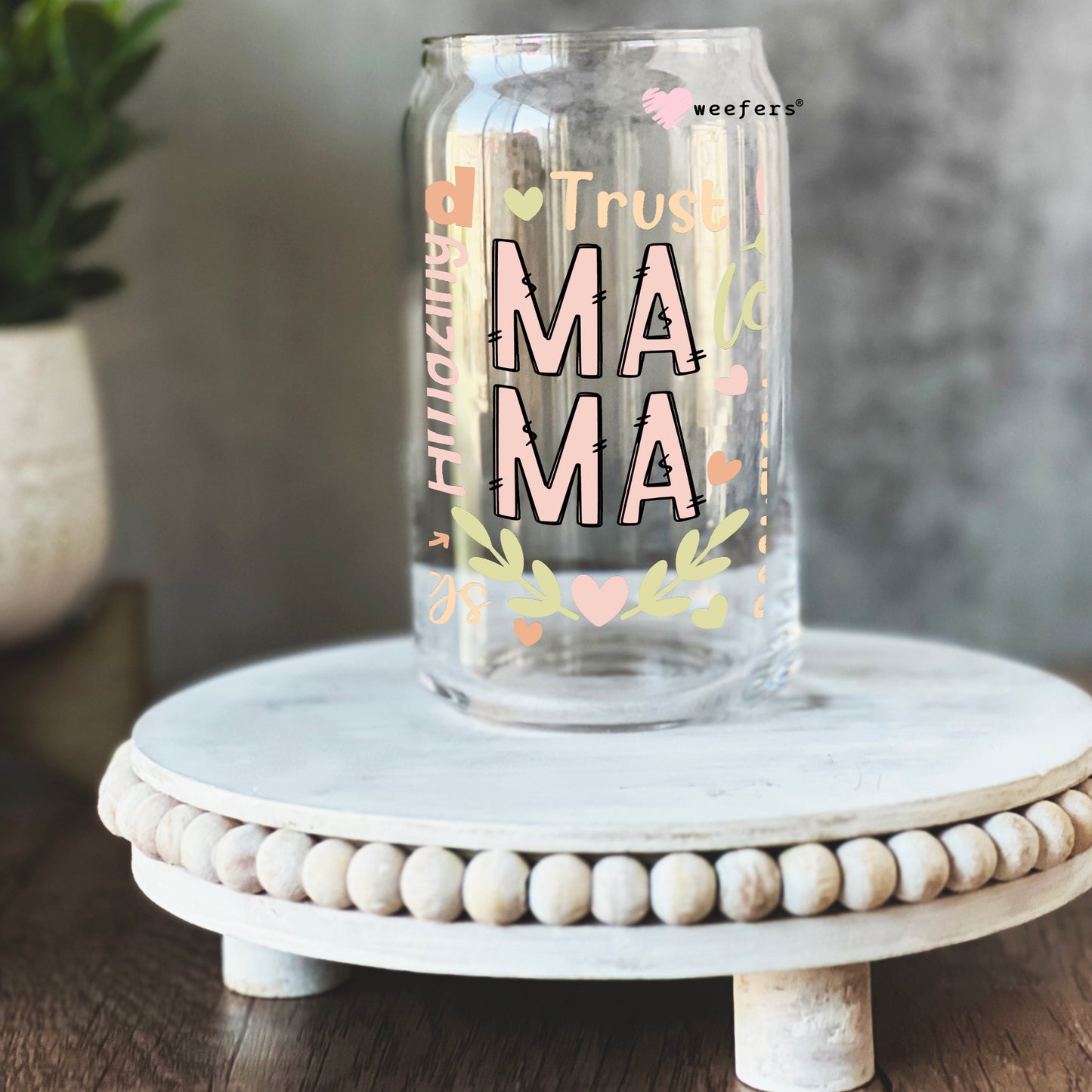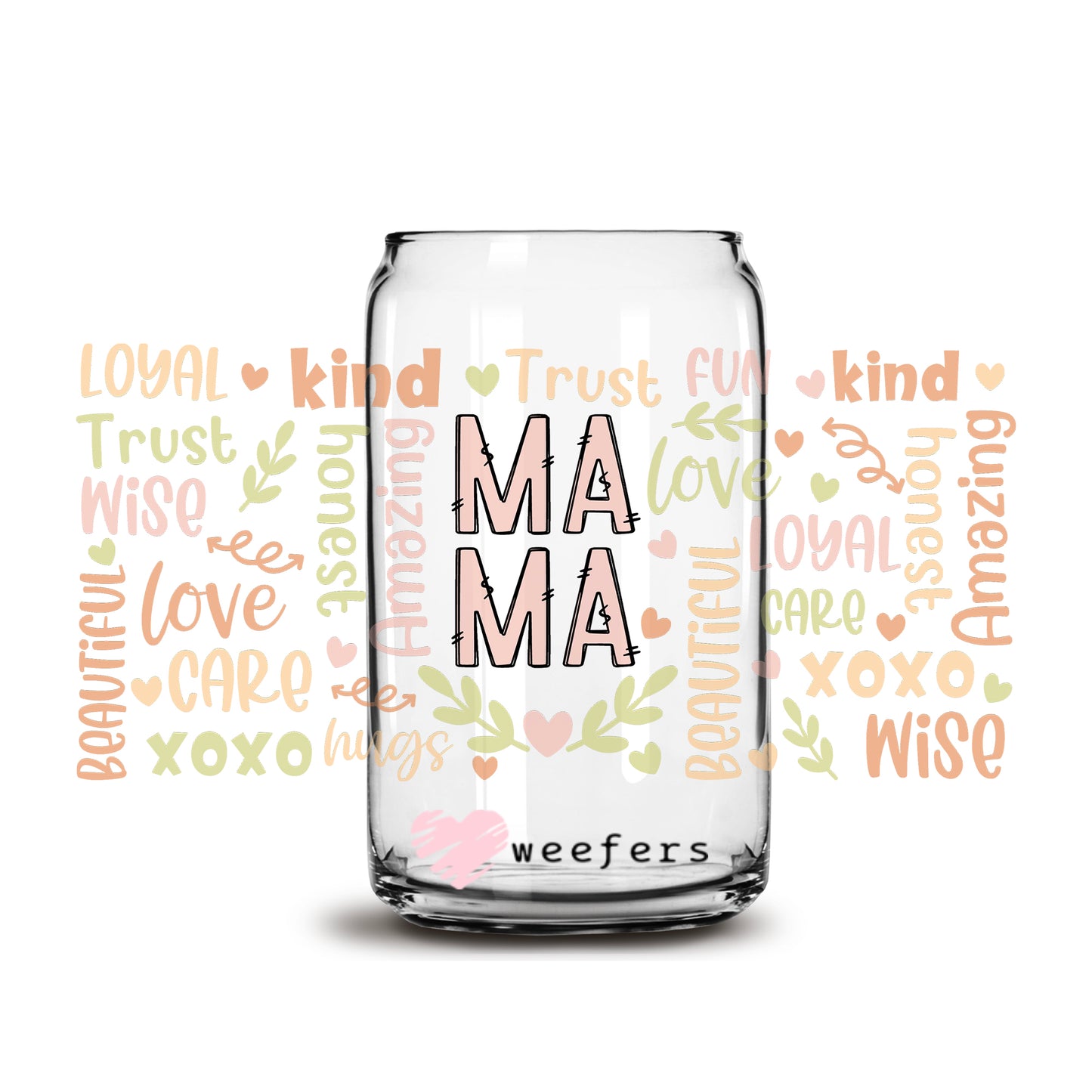 Peach and Green Mama Quotes 16oz Libbey Glass Can UV DTF or Sublimation Wrap - Decal Description