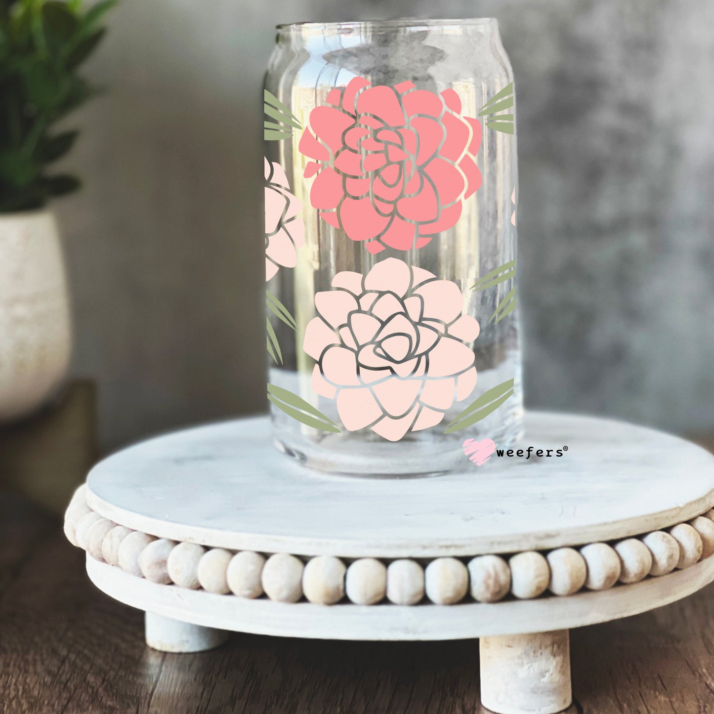 Peonies Floral Libbey Glass Can Wrap