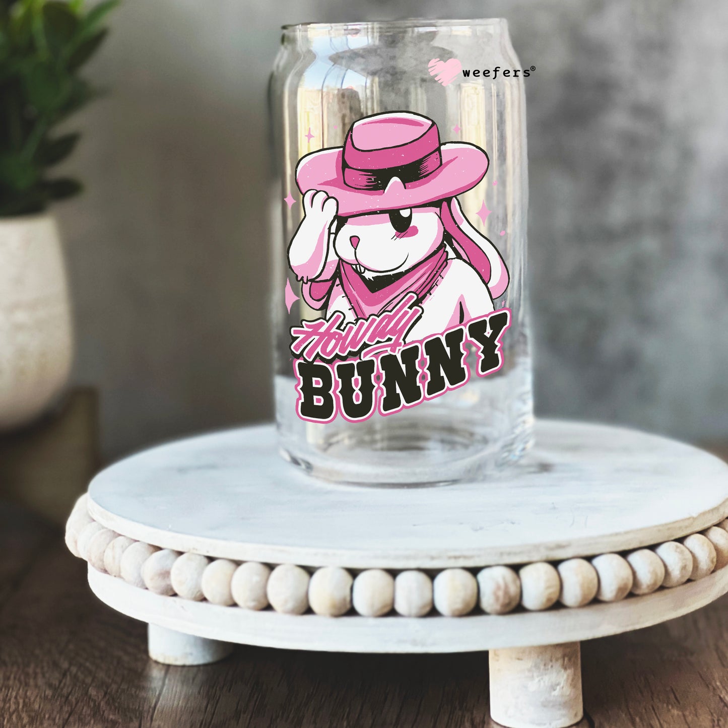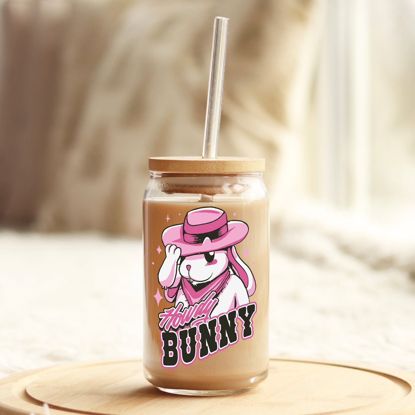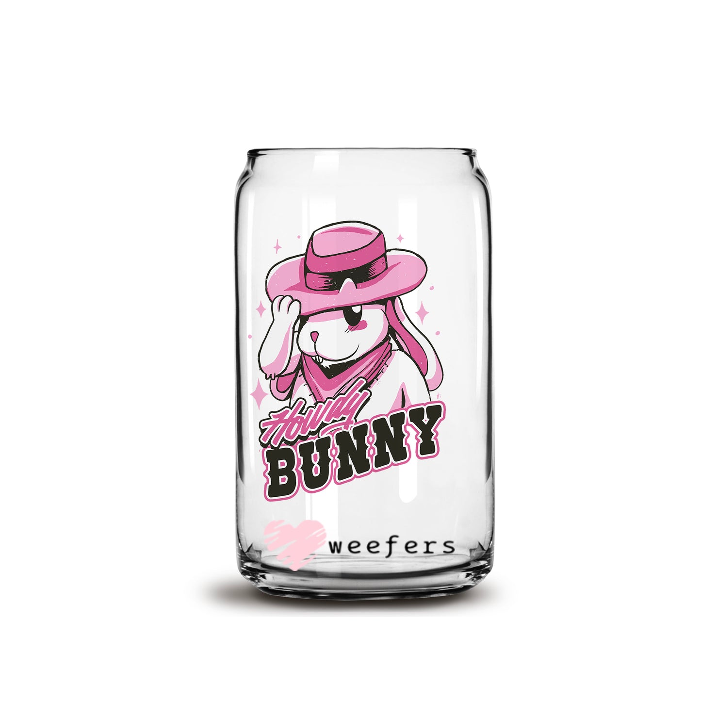 Pink Howdy Bunny Easter 16oz Libbey Glass Can UV DTF or Sublimation Cup Wrap - Decal Transfer