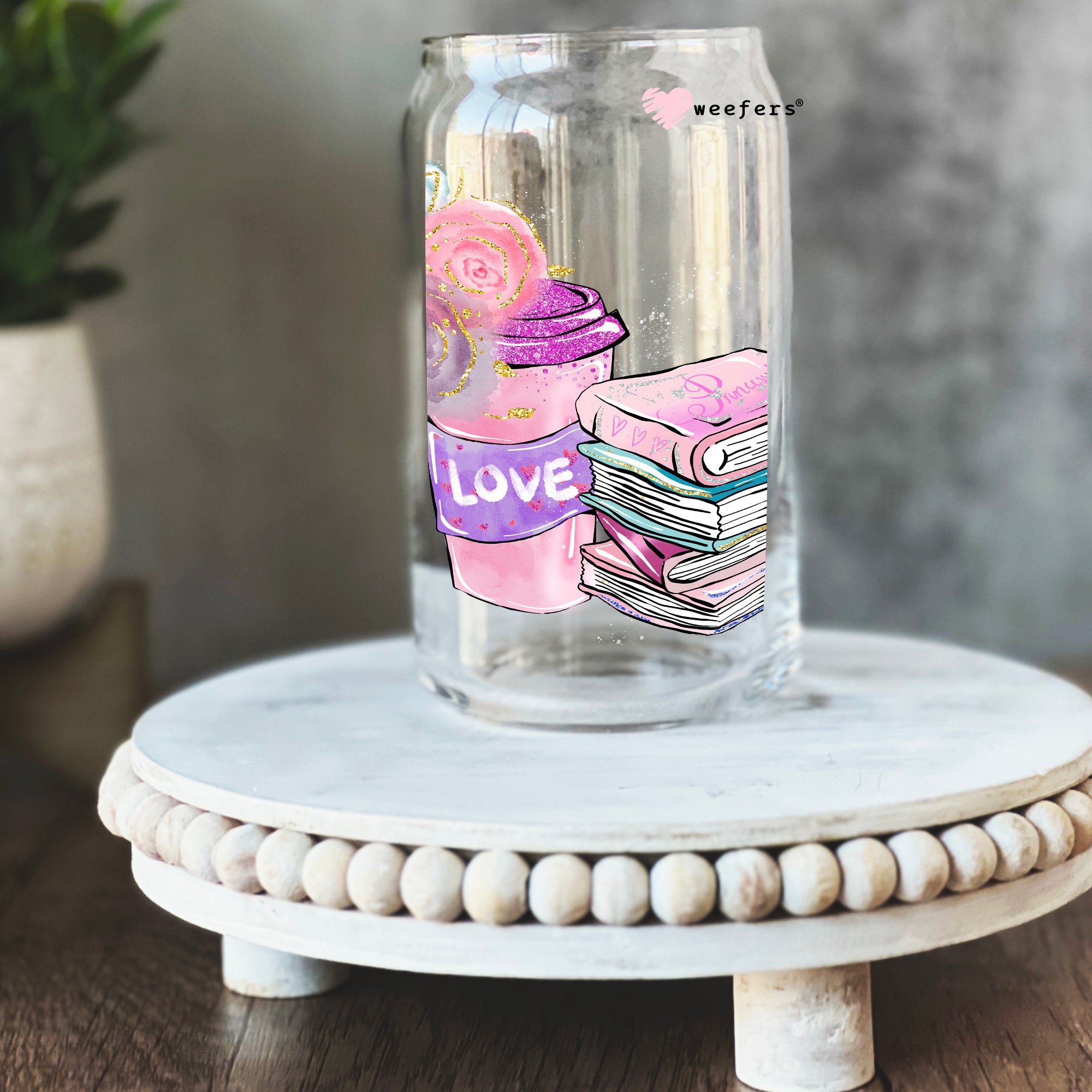Pink Love Books 16oz Libbey Glass Can UV DTF or Sublimation Wrap - Decal