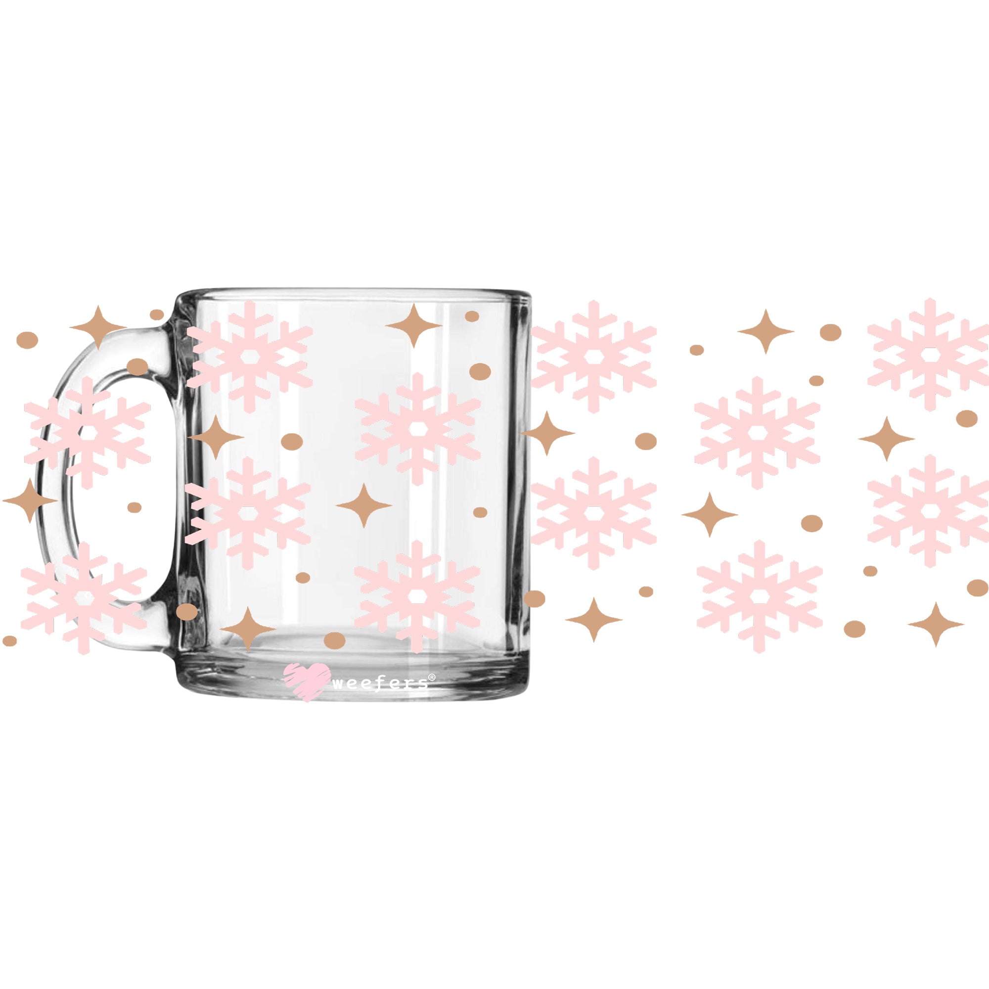 Pink Snowflakes Christmas 11oz Coffee Mug UV DTF or Sublimation Wrap - Decal Description