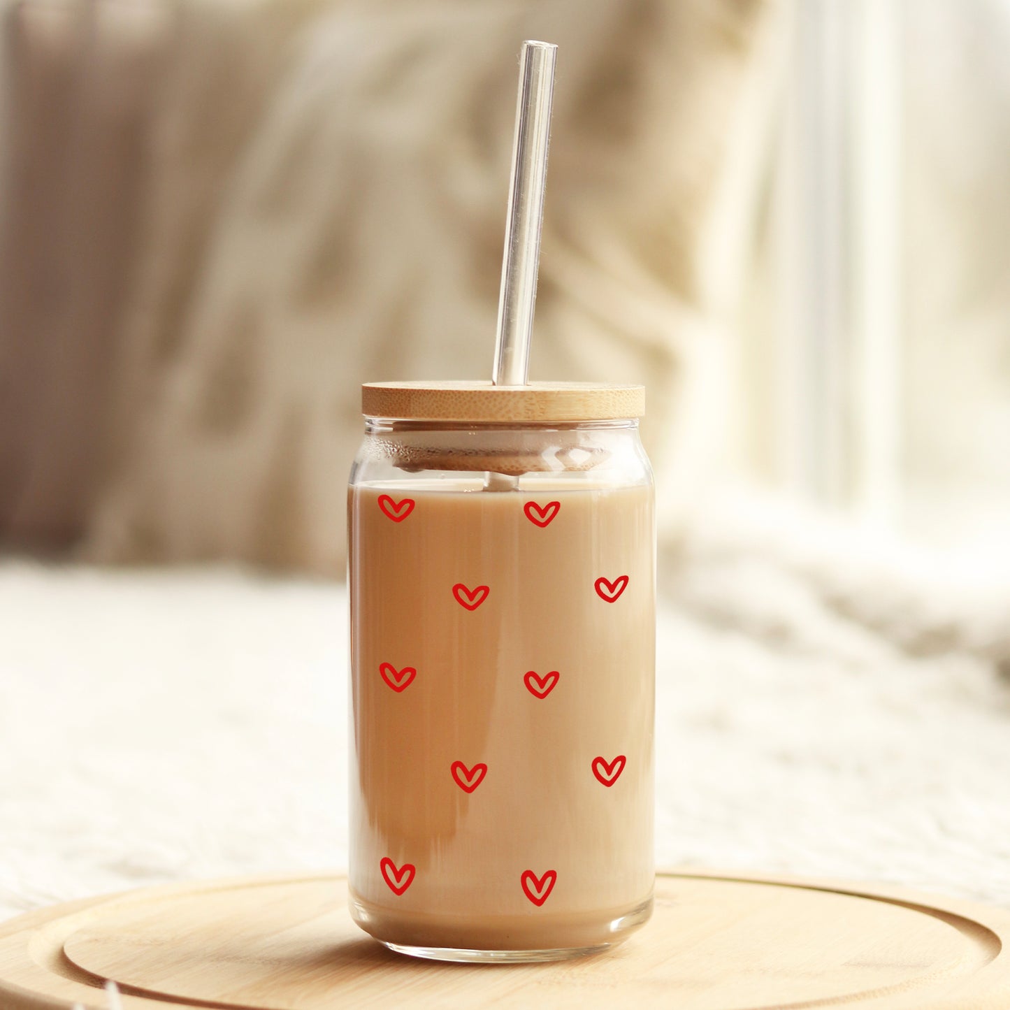 Red Hearts Valentine's Day 16oz Libbey Glass Can UV DTF or Sublimation Cup Wrap - Decal Transfer Description