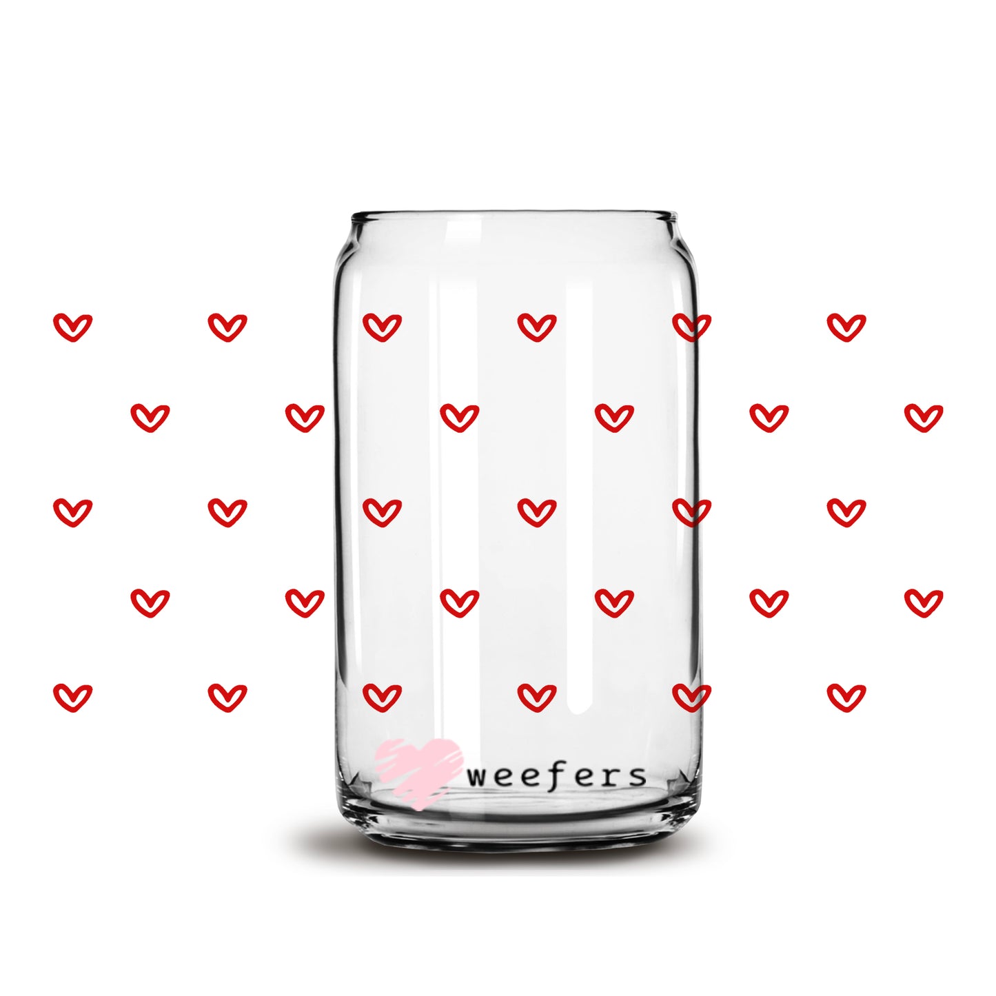Red Hearts Valentine's Day 16oz Libbey Glass Can UV DTF or Sublimation Cup Wrap - Decal Transfer