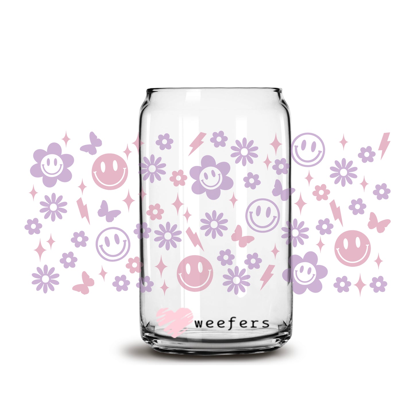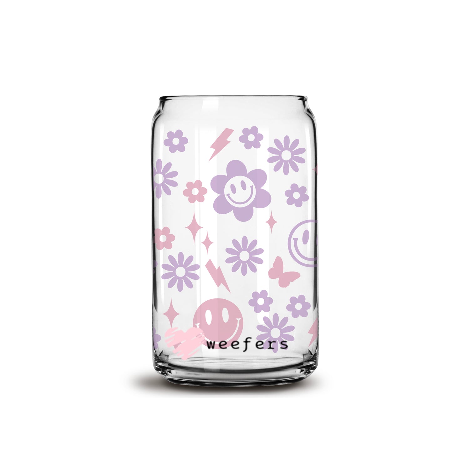 Retro Purple Happy Faces Libbey Glass Can Wrap UV DTF Sublimation Transfers