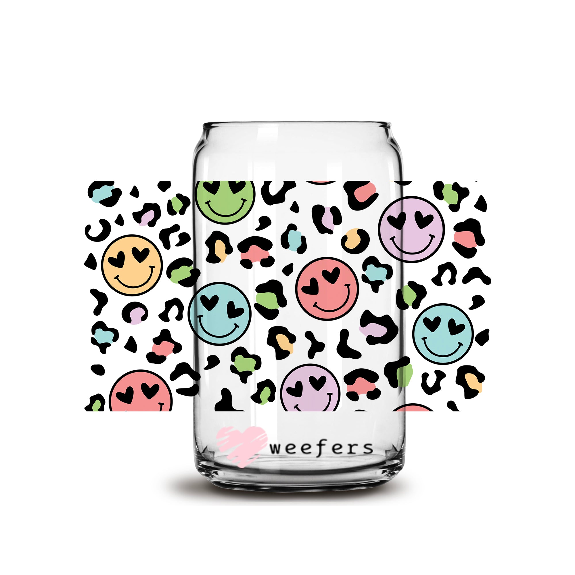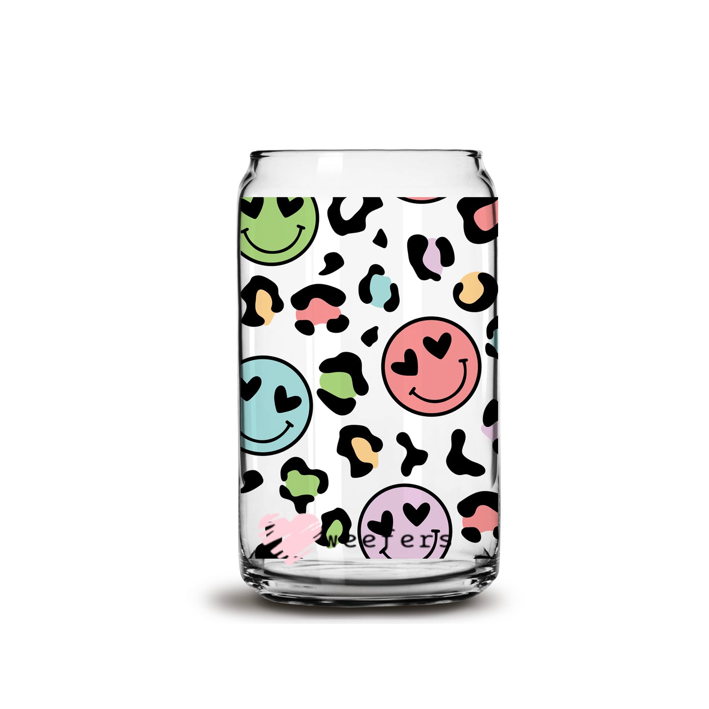 Retro Smile Leopard Print Libbey Glass Can UV DTF or Sublimation Wrap Description