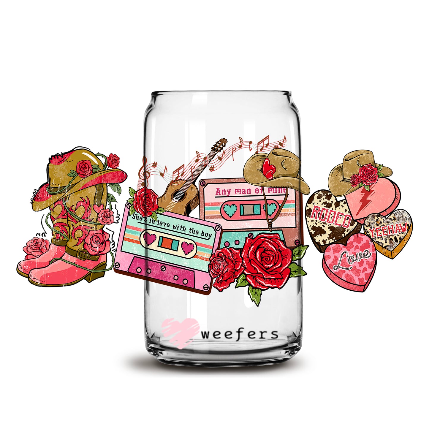 Rodeo Love Valentine's Day 16oz Libbey Glass Can UV DTF or Sublimation Cup Wrap - Decal Transfer
