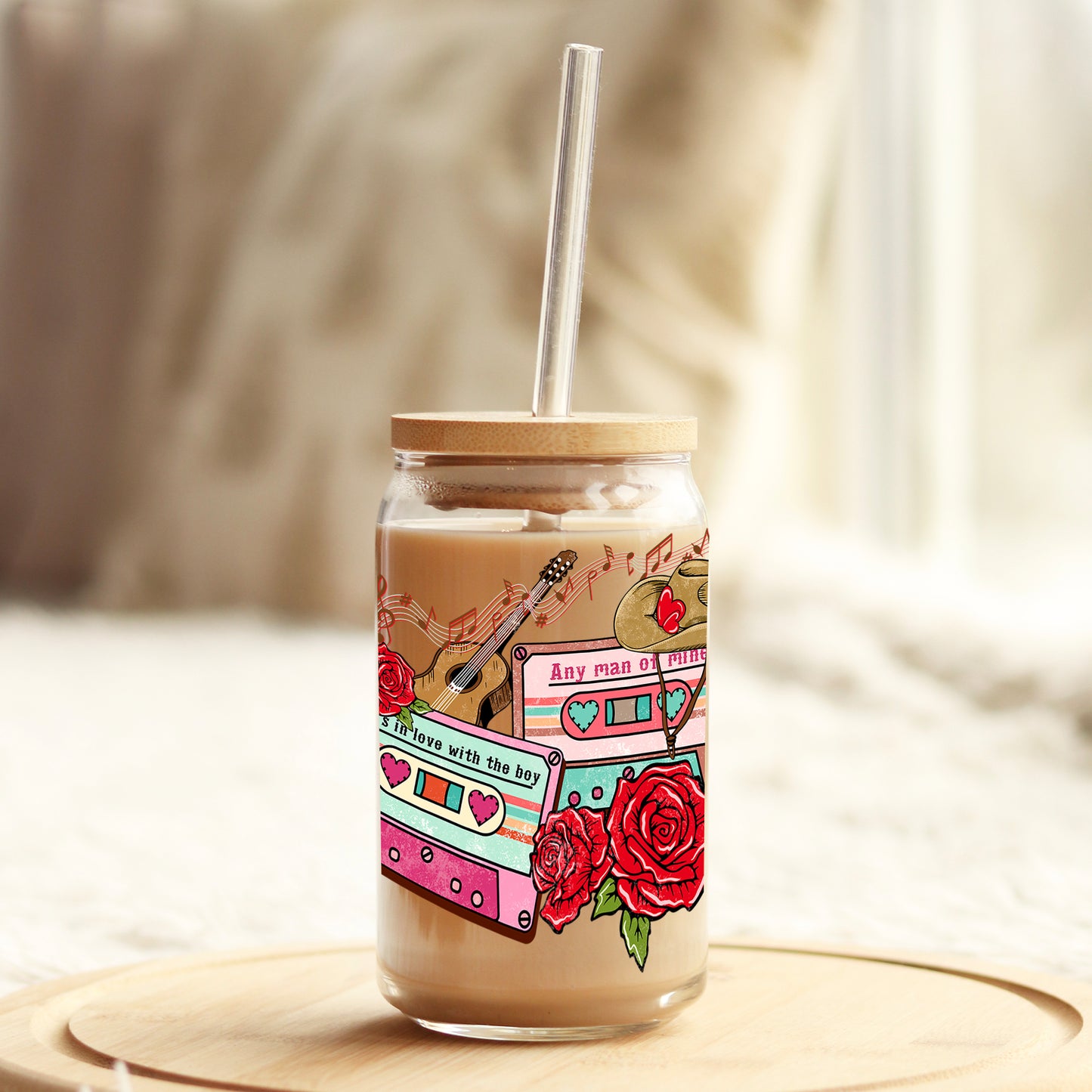 Rodeo Love Valentine's Day 16oz Libbey Glass Can UV DTF or Sublimation Cup Wrap - Decal Transfer Description