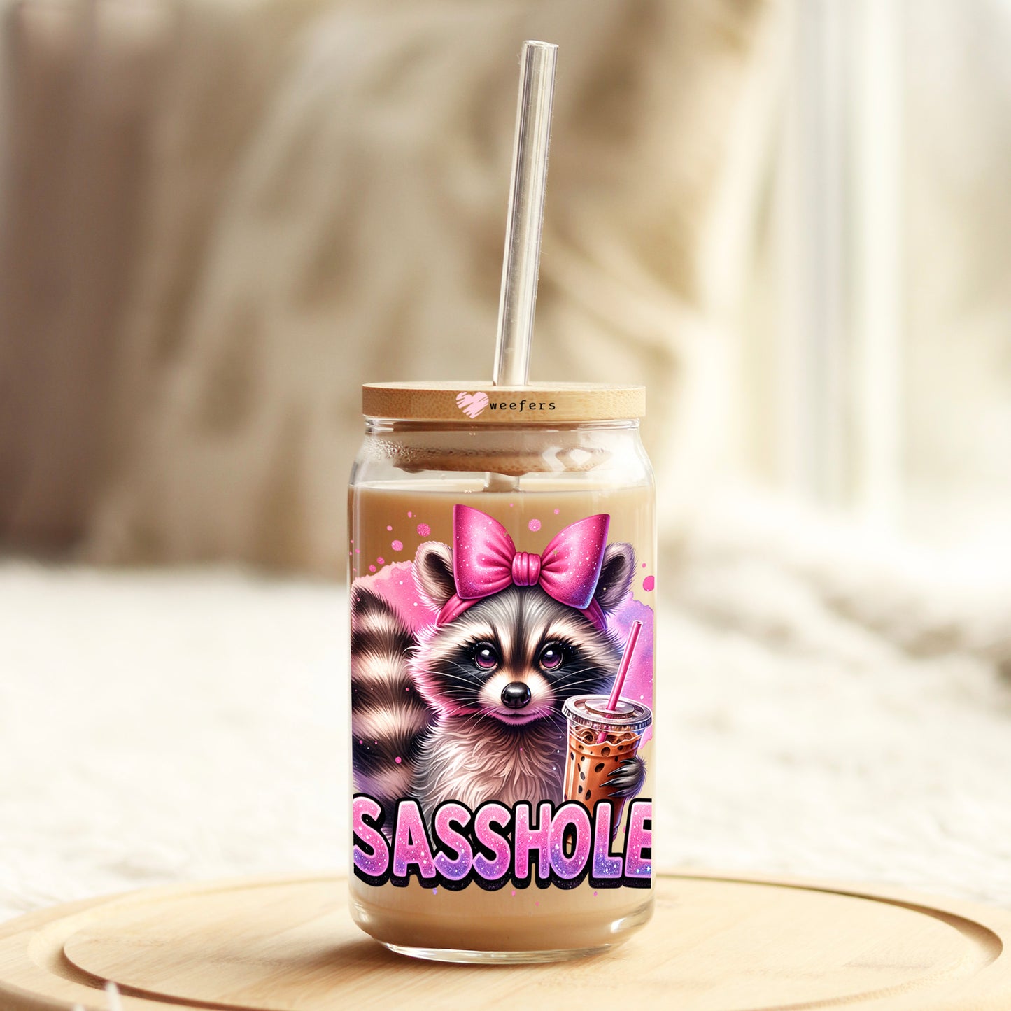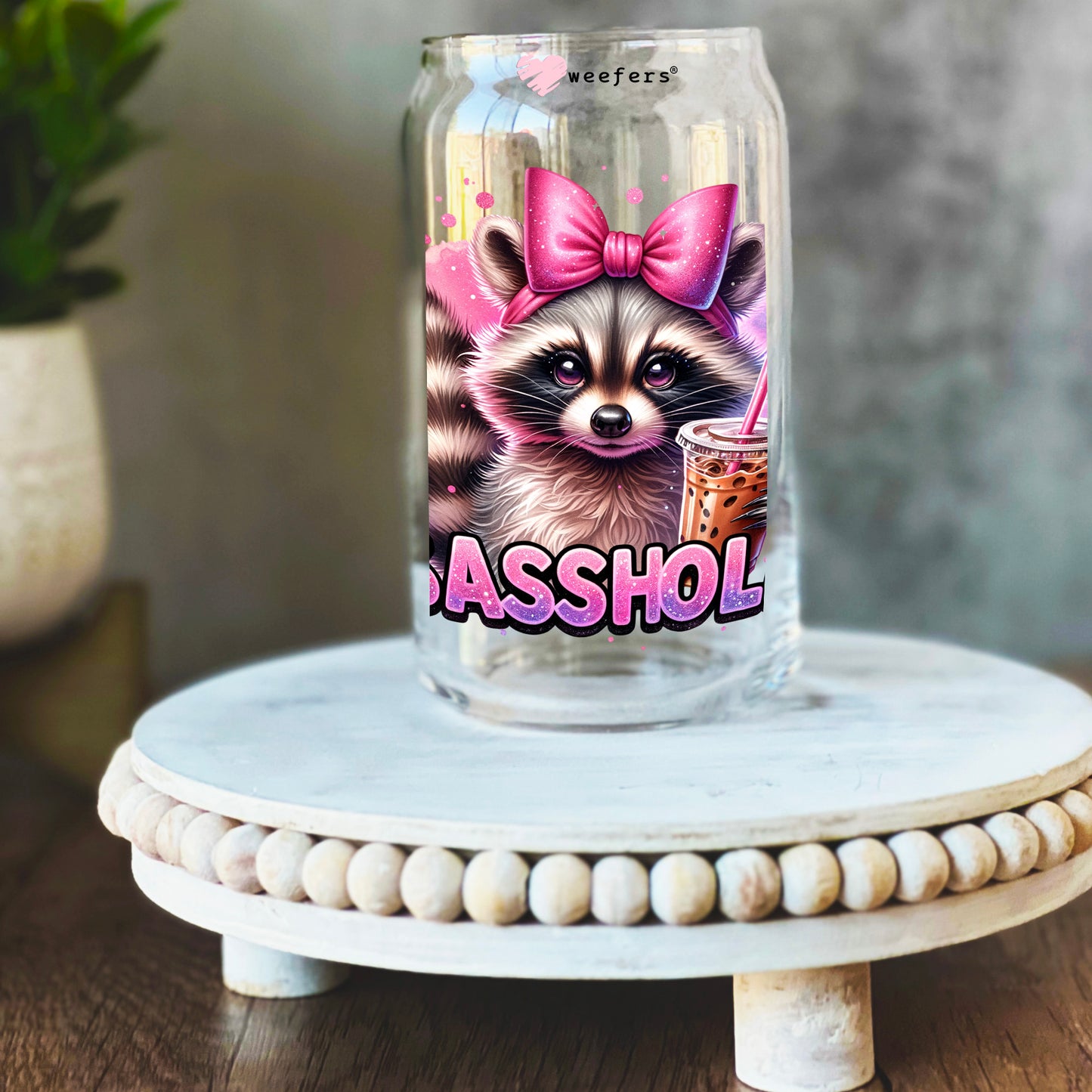 Sasshole Raccoon 16oz Libbey Glass Can UV DTF or Sublimation Decal - Transfer