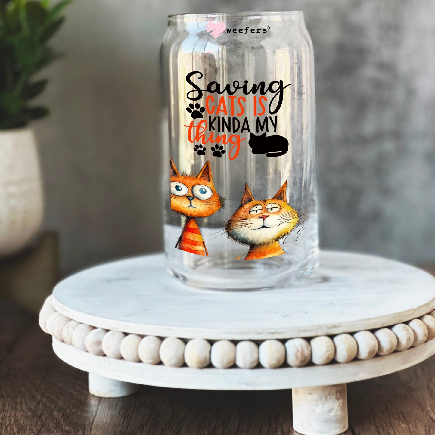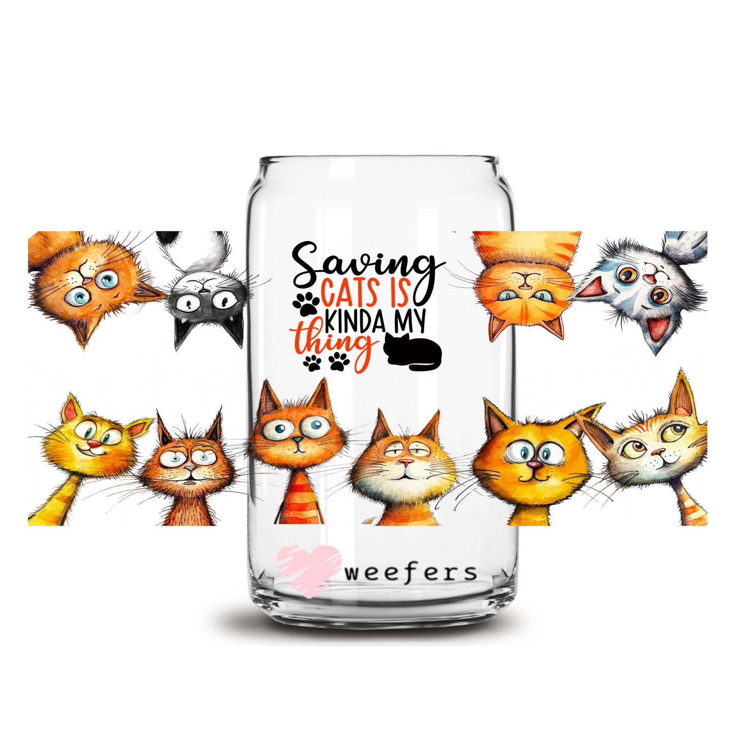 Saving Cats Kinda My Thing 16oz Libbey Glass Can UV DTF or Sublimation Wrap - Transfer