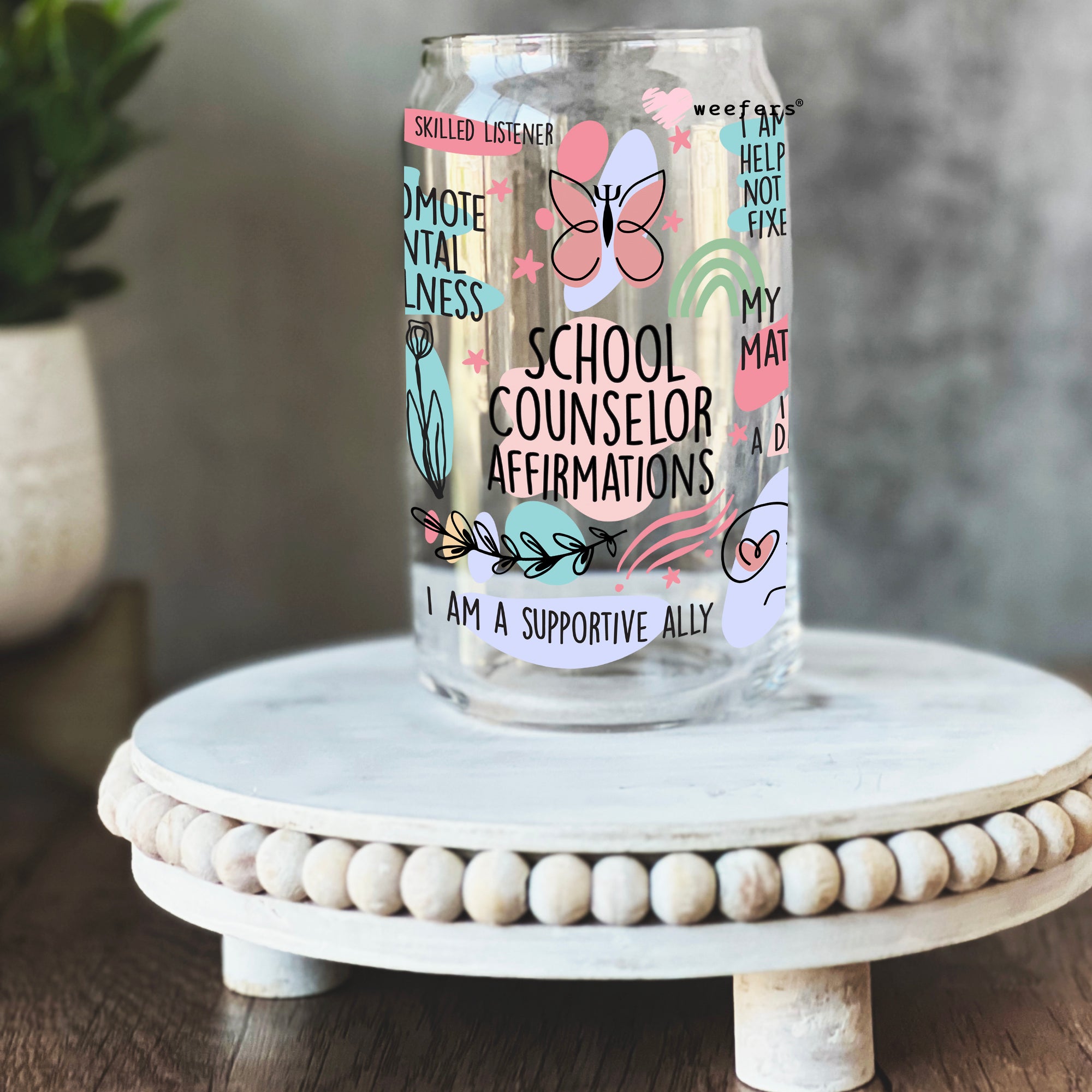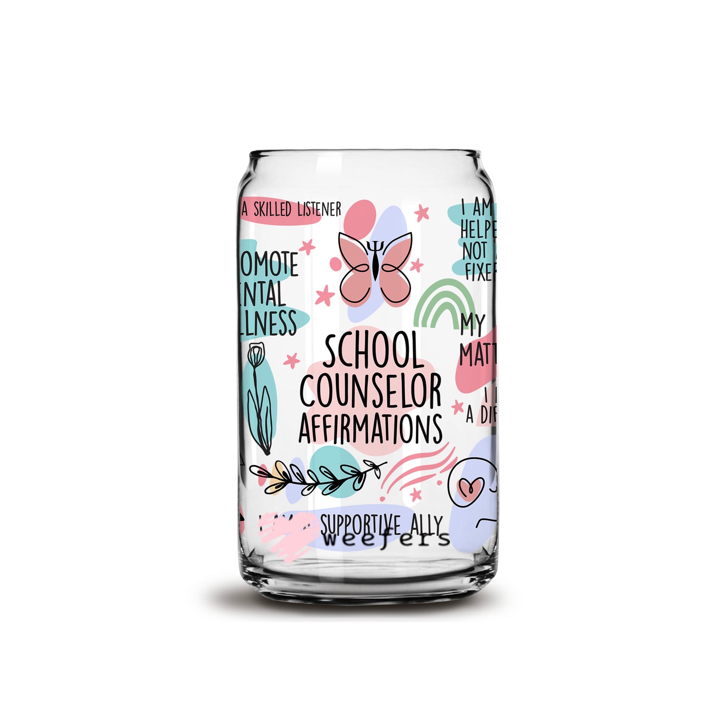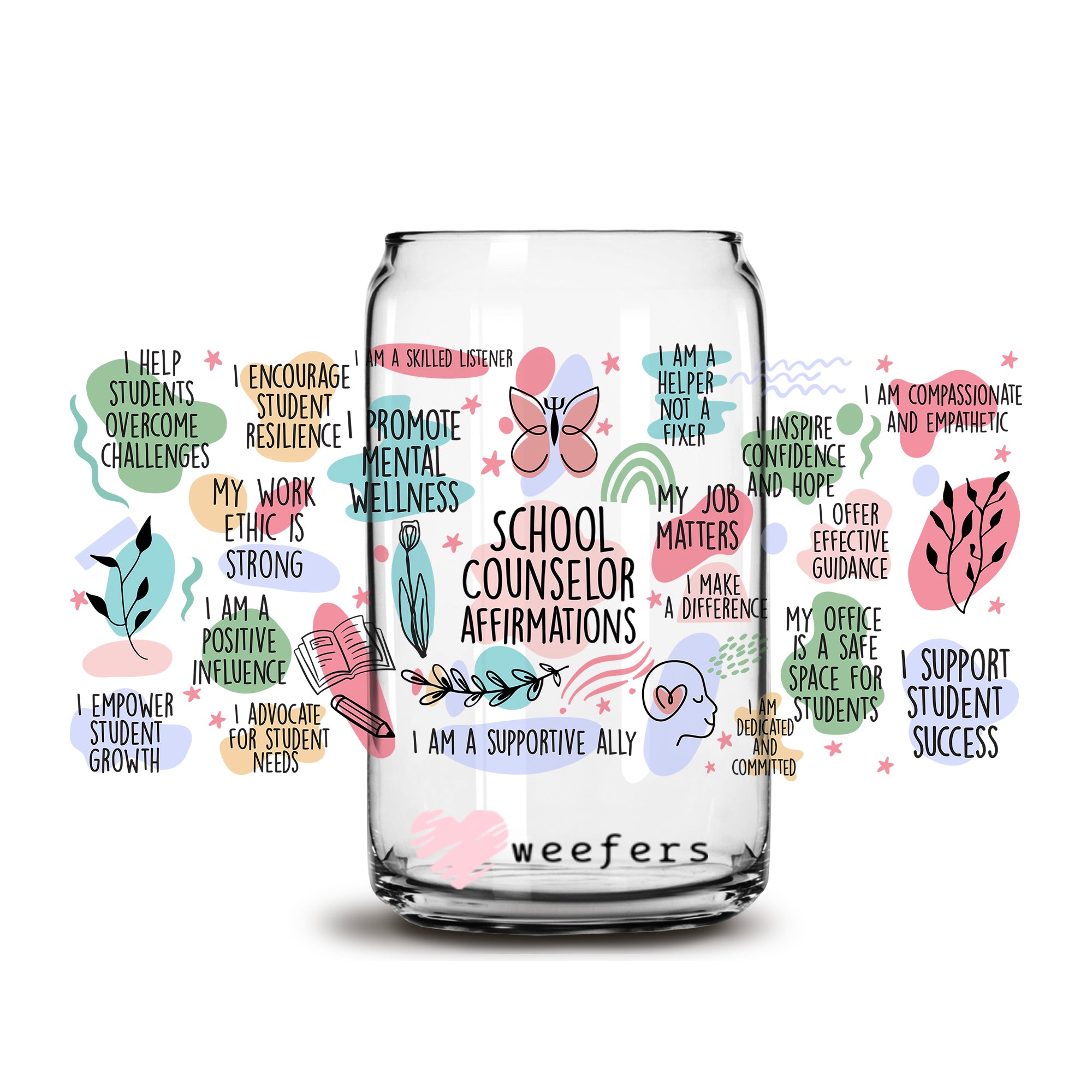 School Counselor Daily Affirmations 16oz Libbey Glass Can UV DTF or Sublimation Wrap - Decal
