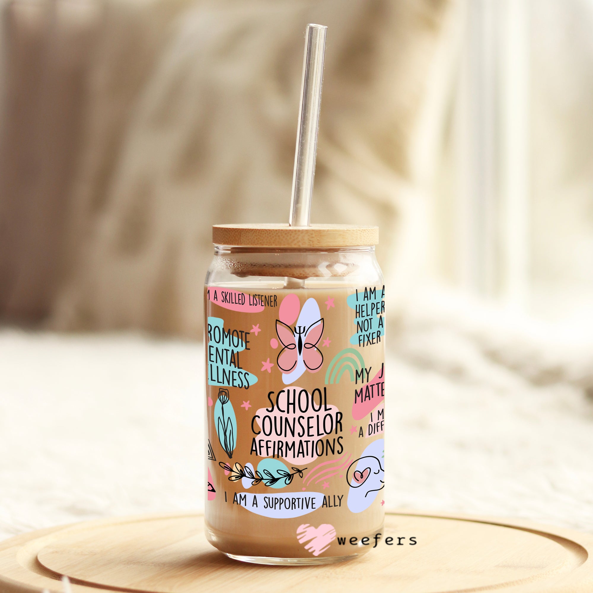 School Counselor Daily Affirmations 16oz Libbey Glass Can UV DTF or Sublimation Wrap - Decal Description