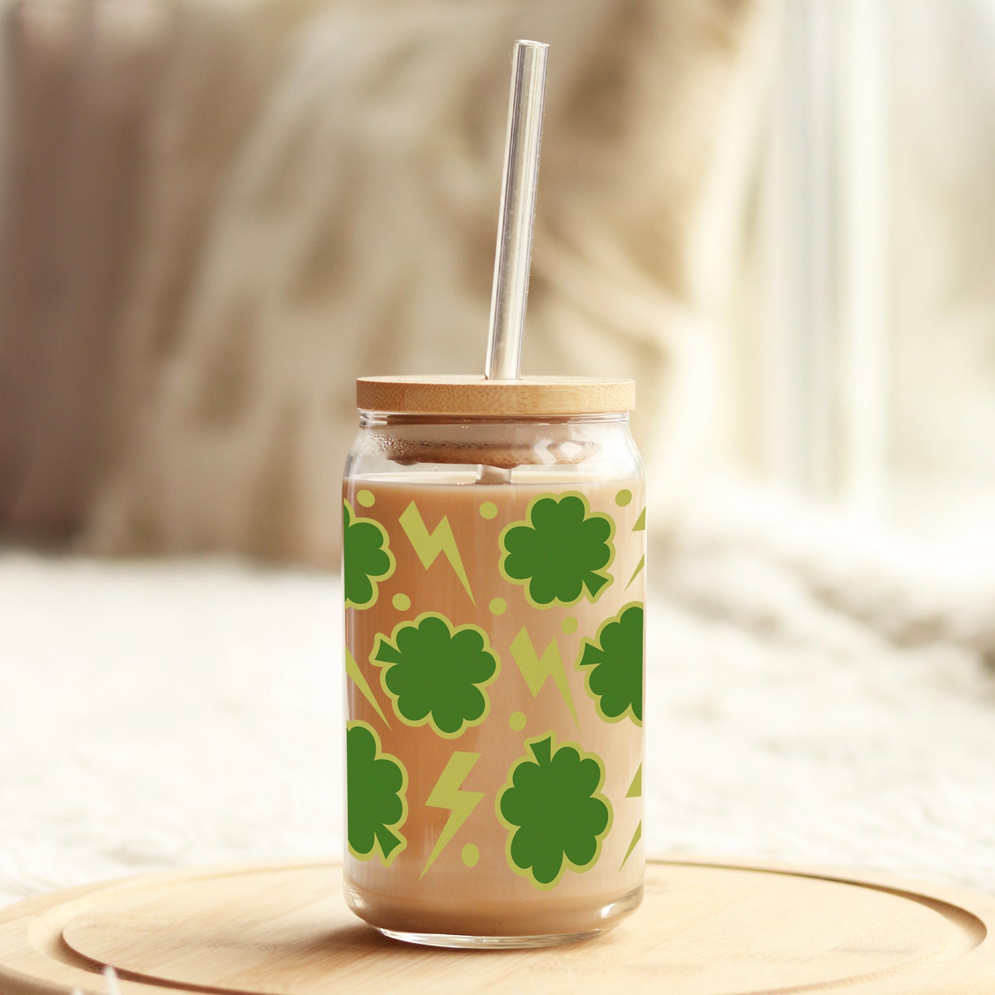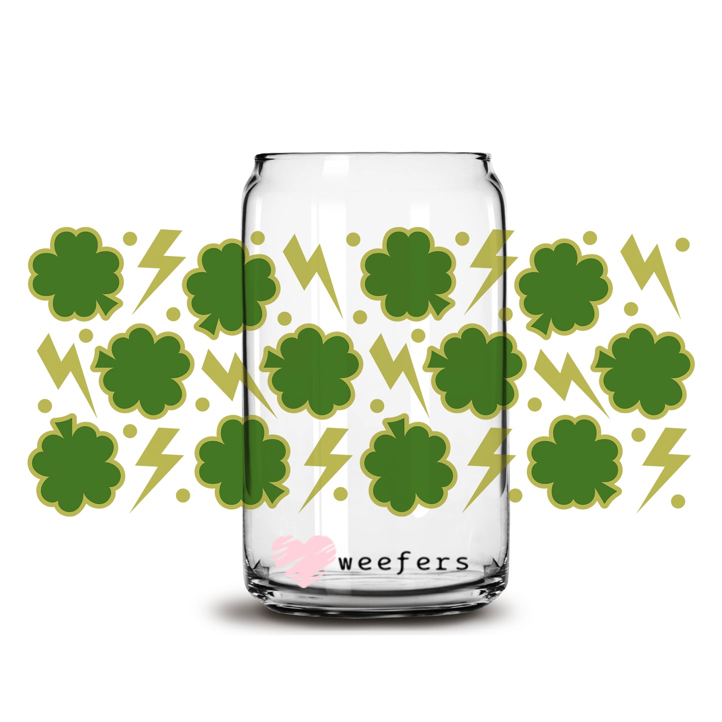 Shamrock and Lightening Bolts St. Patrick's Day 16oz Libbey Glass Can UV DTF or Sublimation Cup Wrap - Decal Transfer