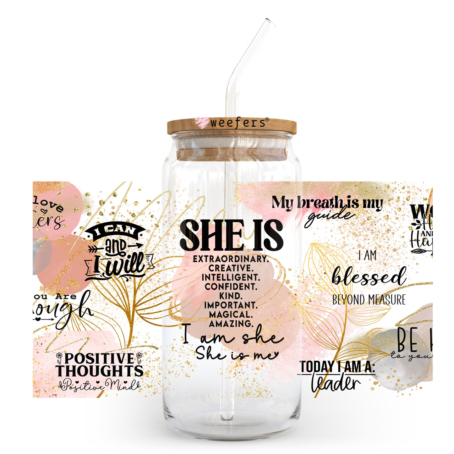 She Is 20oz Libbey Glass Can UV DTF or Sublimation Wrap - Decal
