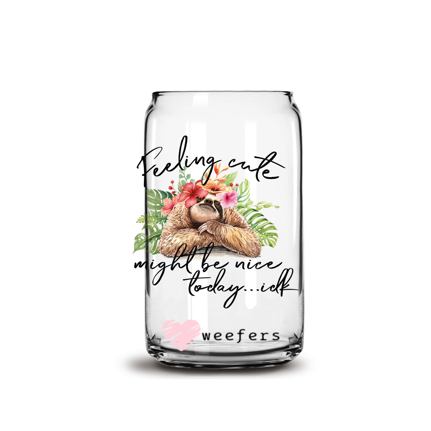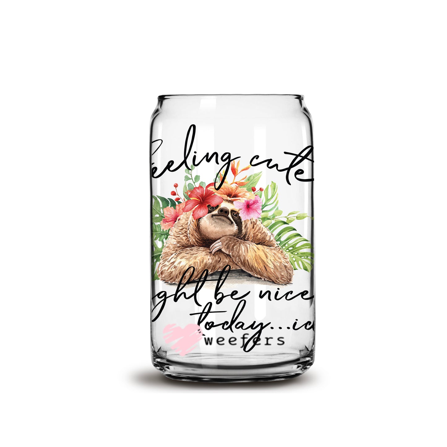 Sloth Feeling Cute 16oz Libbey Glass Can UV DTF or Sublimation Wrap - Decal