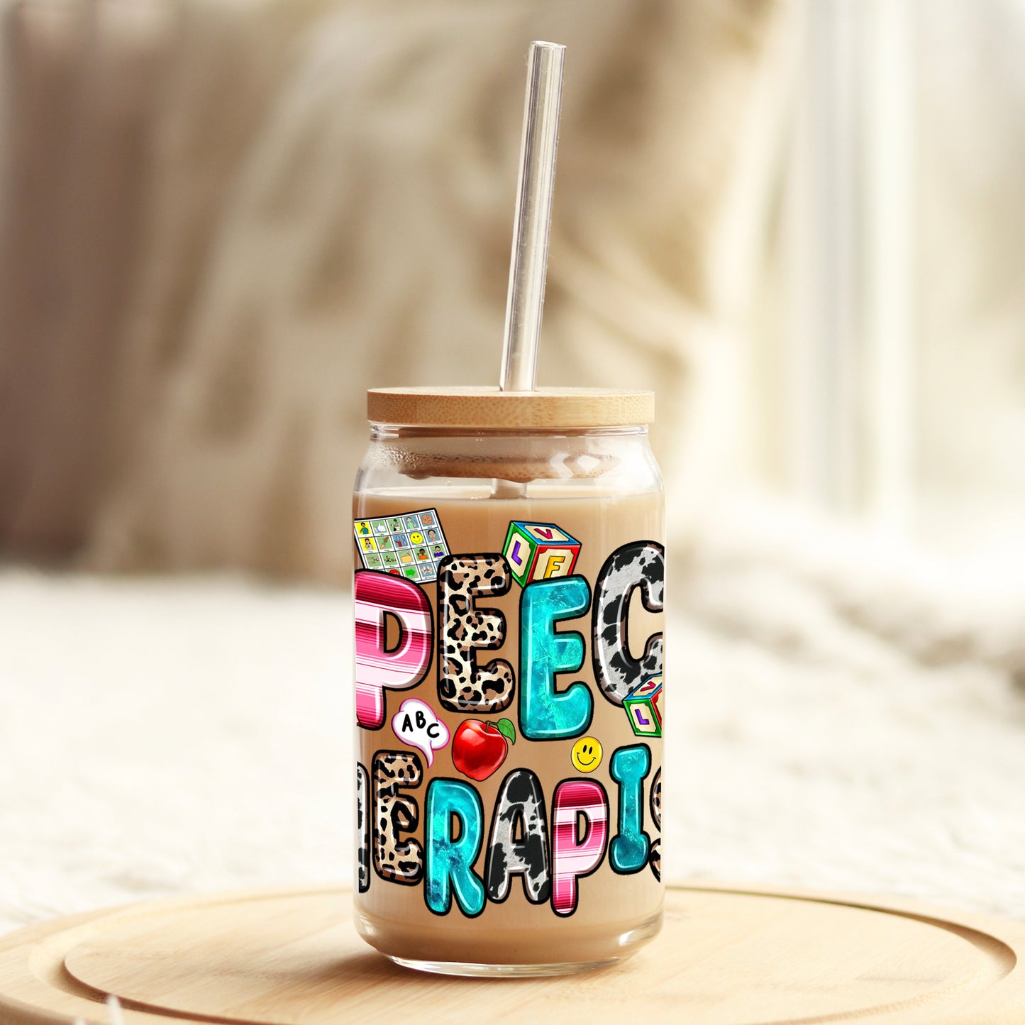 Speech Therapist 16oz Libbey Glass Can UV DTF or Sublimation Cup Wrap - Decal Transfer
