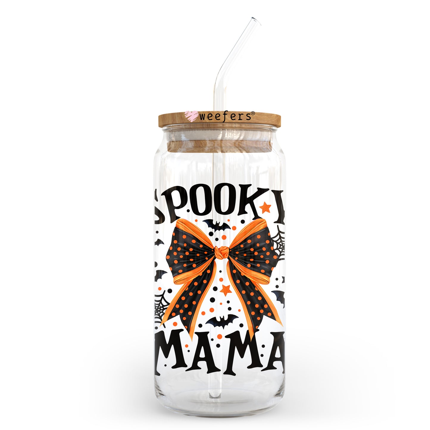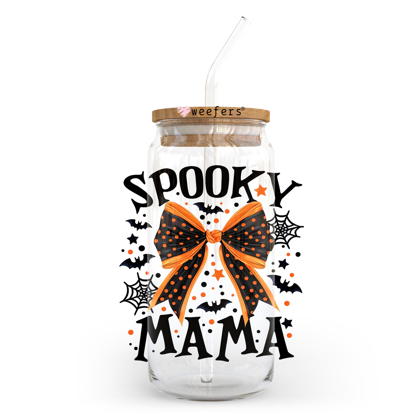 Spooky Mama Bow 20oz Libbey Glass Can, 34oz Hip Sip, 40oz Tumbler, 24oz Cold Cup UV DTF or Sublimation Decal Transfer