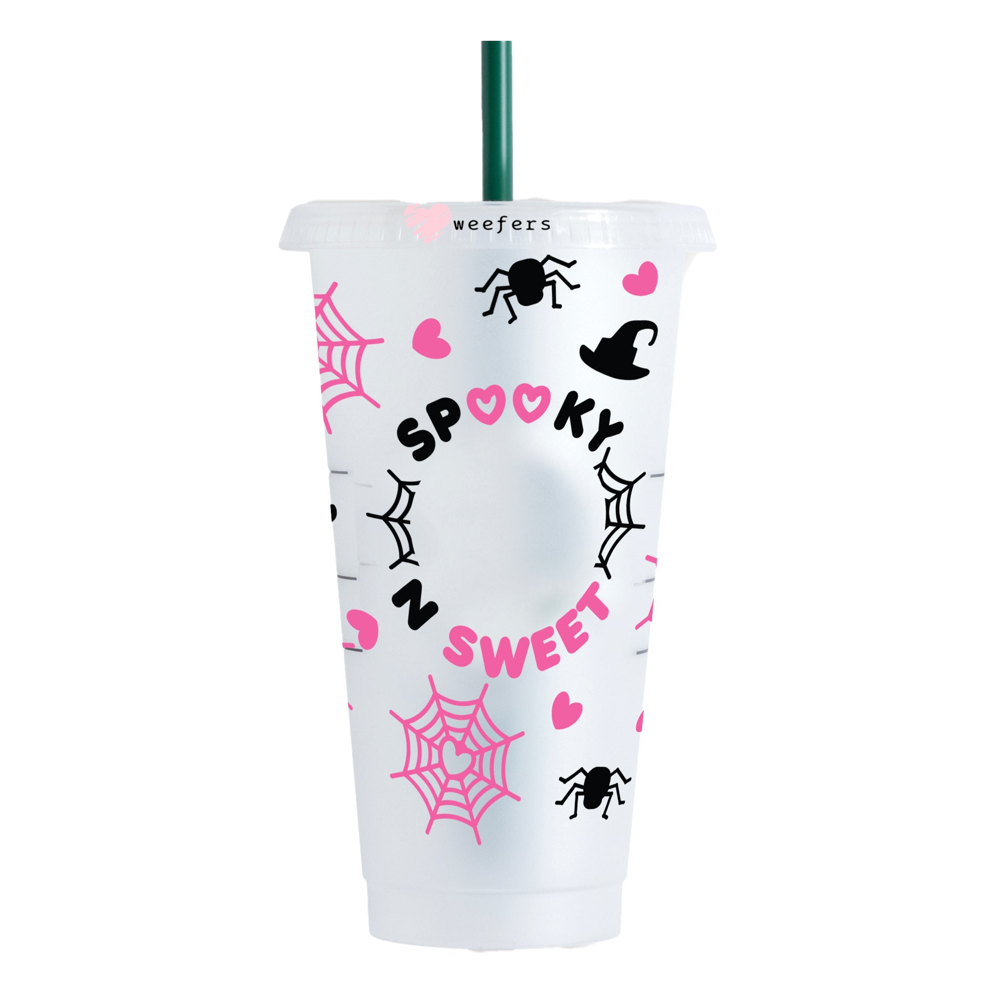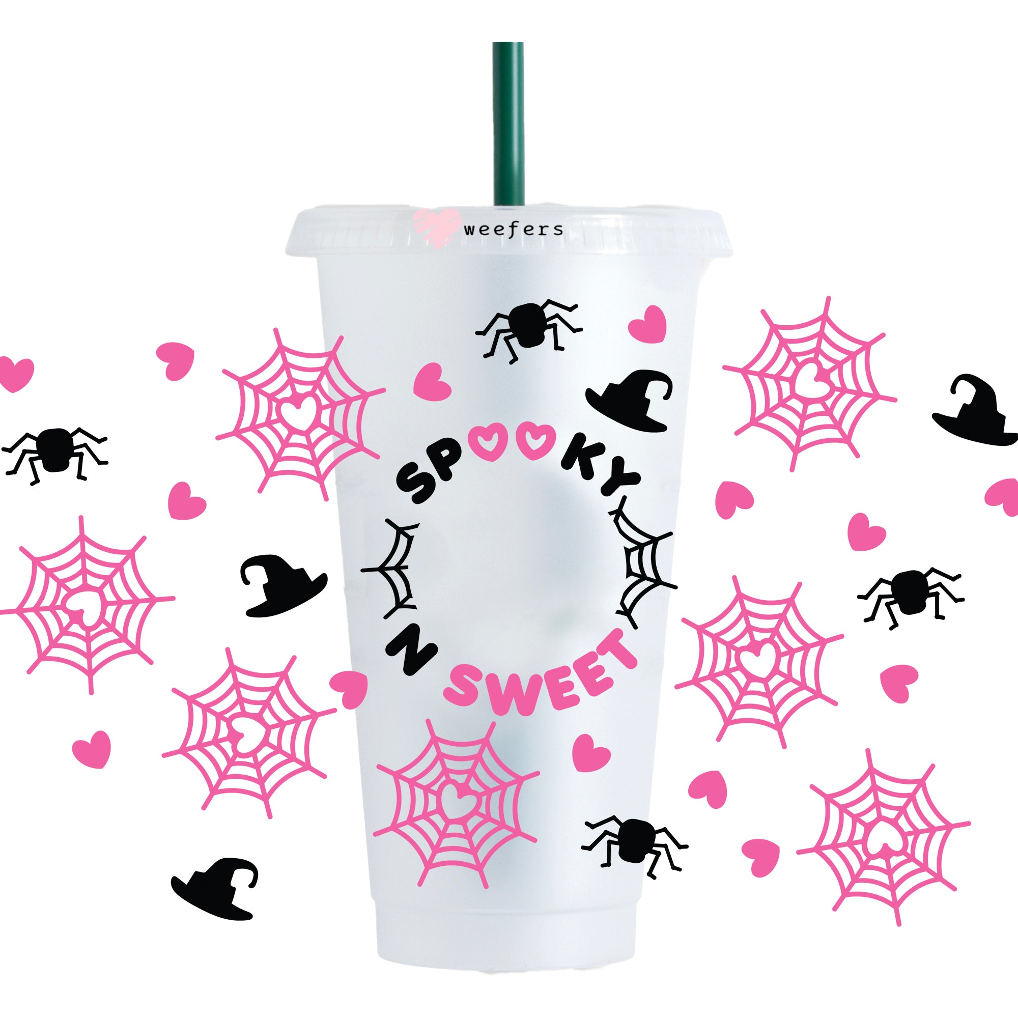 Spooky n Sweet Pink Halloween 24oz UV DTF Cold Cup Wrap - Ready to apply Wrap - HOLE