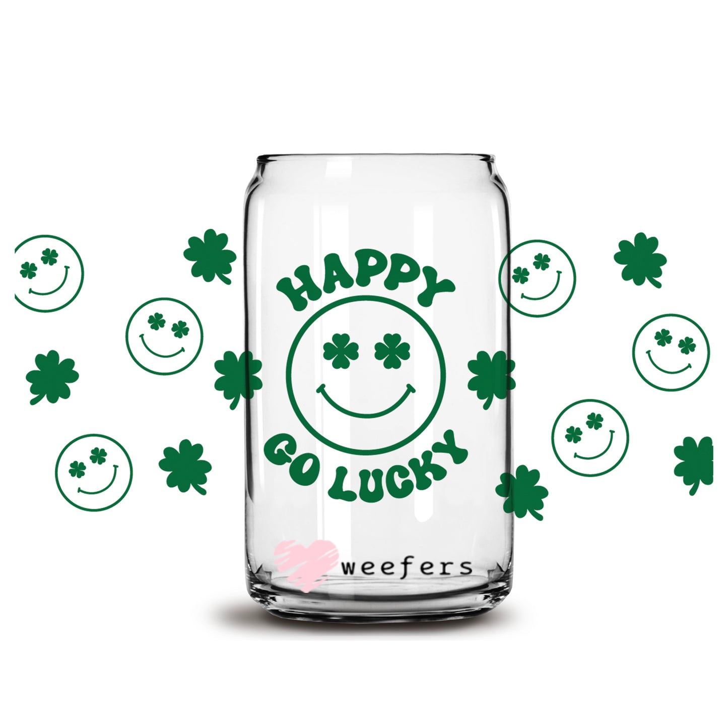 St Patrick's Day - Smile Happy Go Lucky Libbey Glass Can Wrap UV DTF Sublimation Transfers