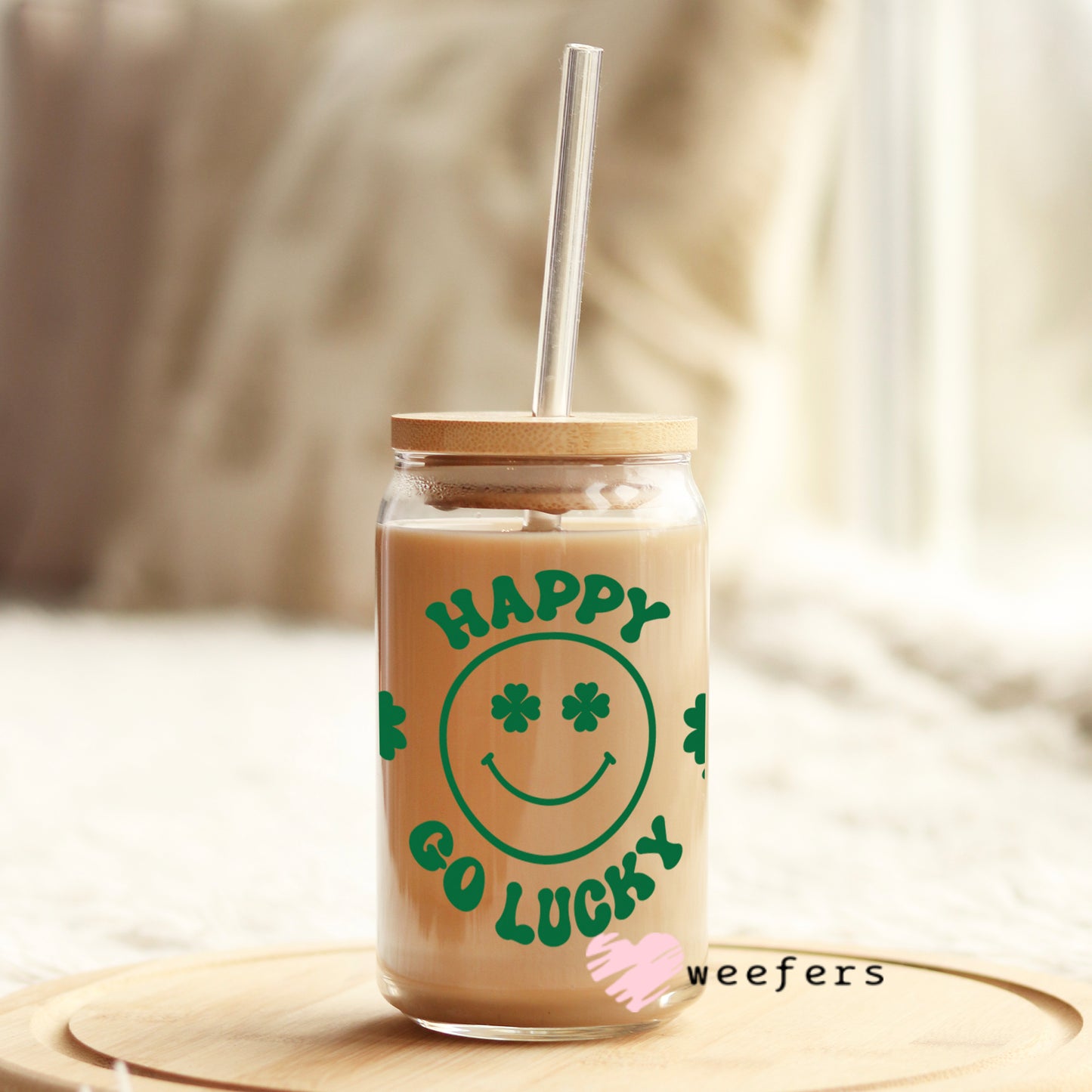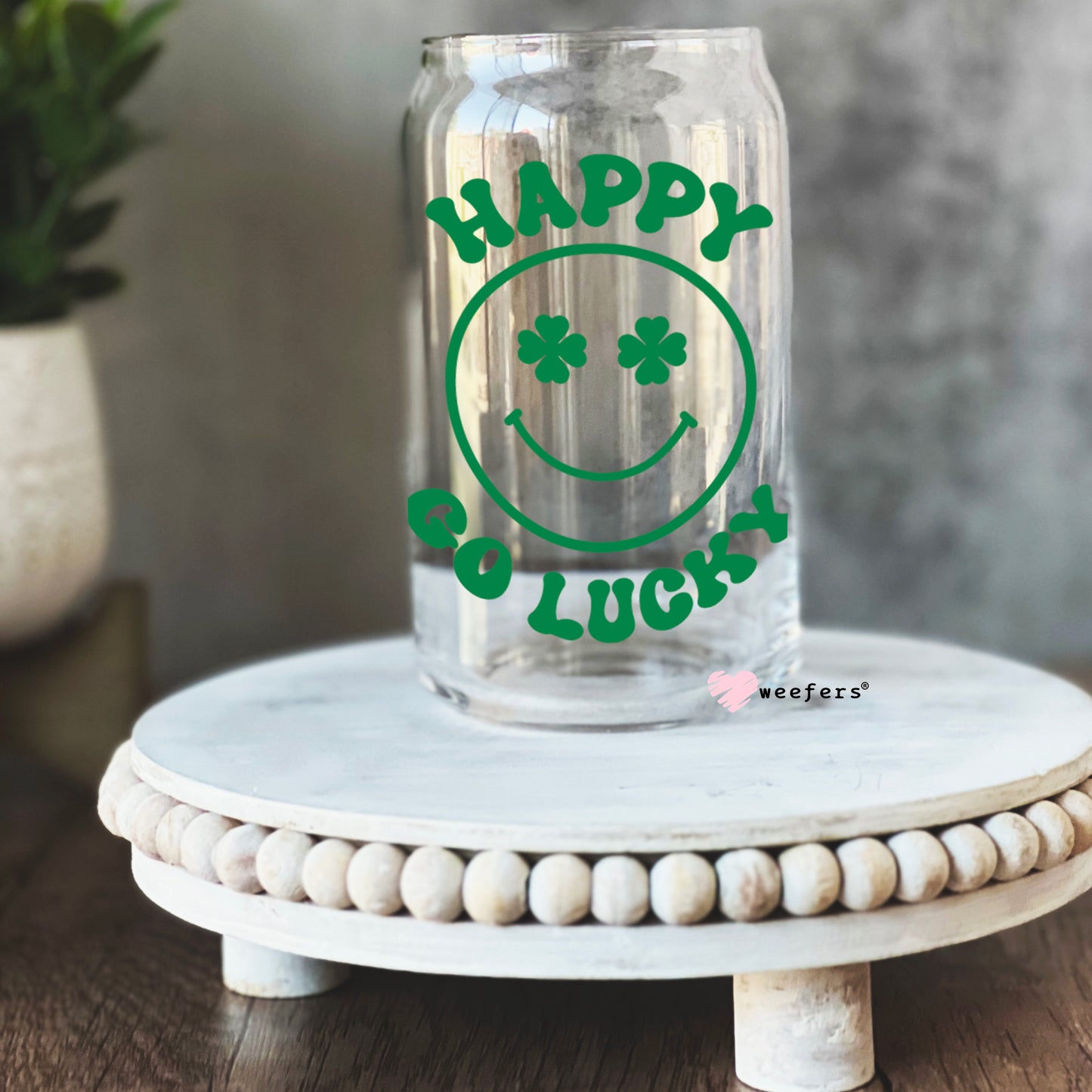 St Patrick's Day - Smile Happy Go Lucky Libbey Glass Can UV DTF or Sublimation Wrap Description