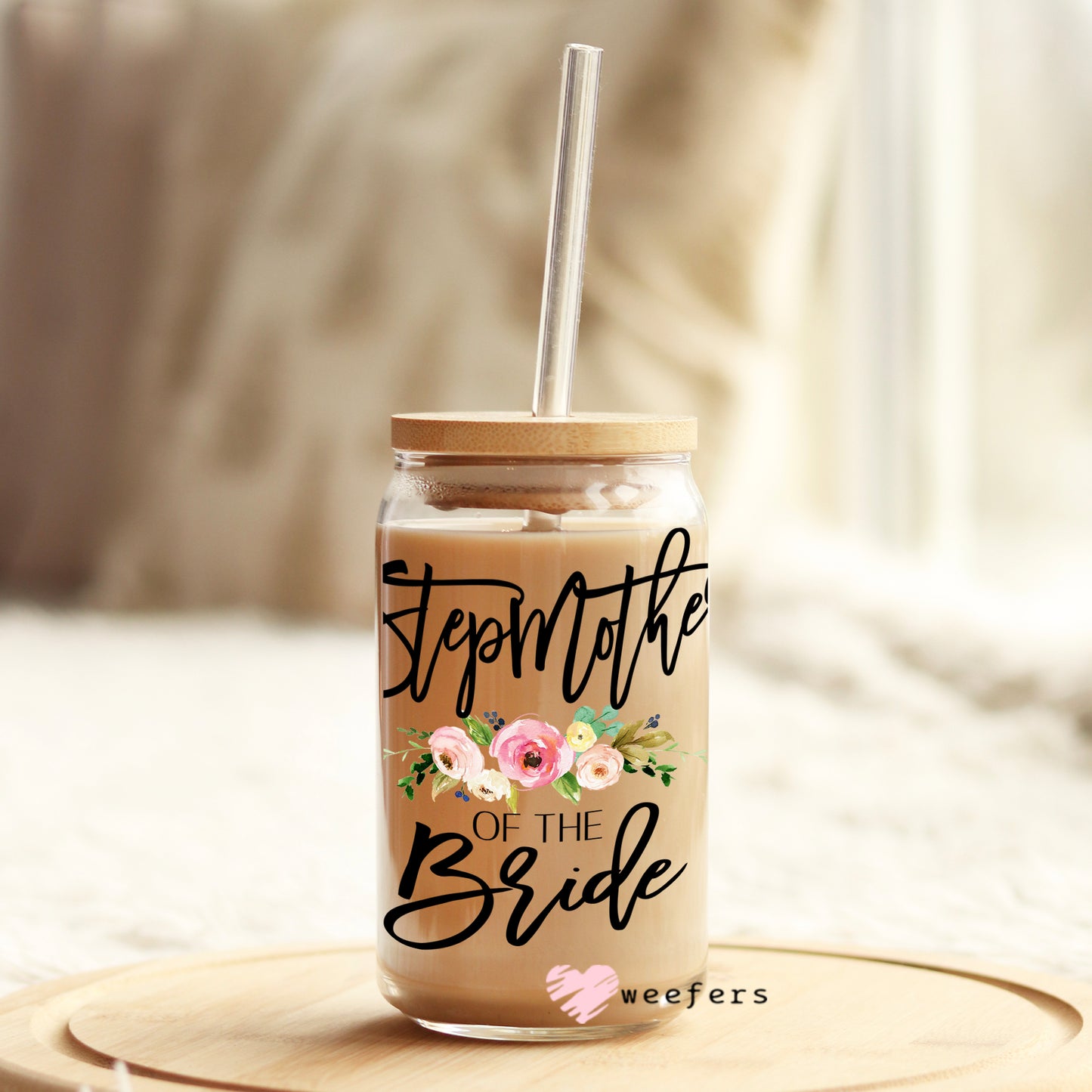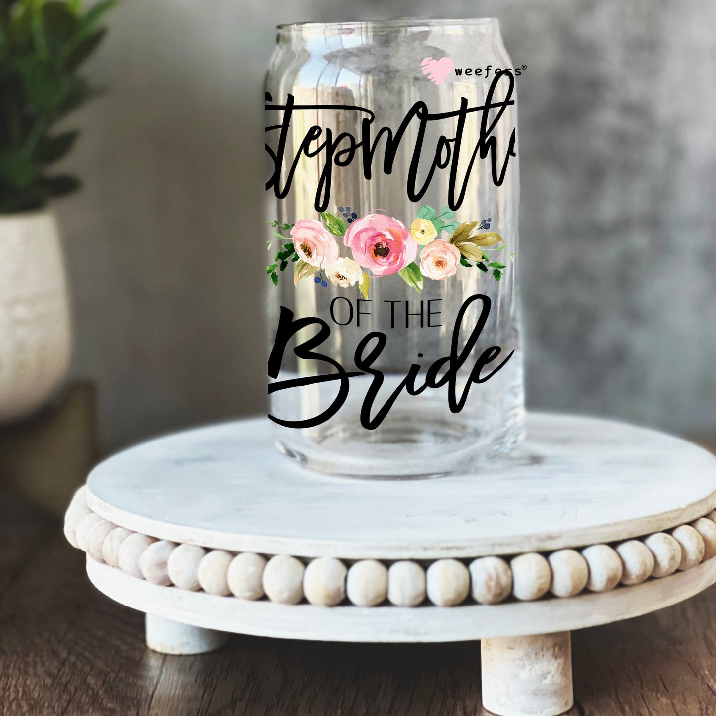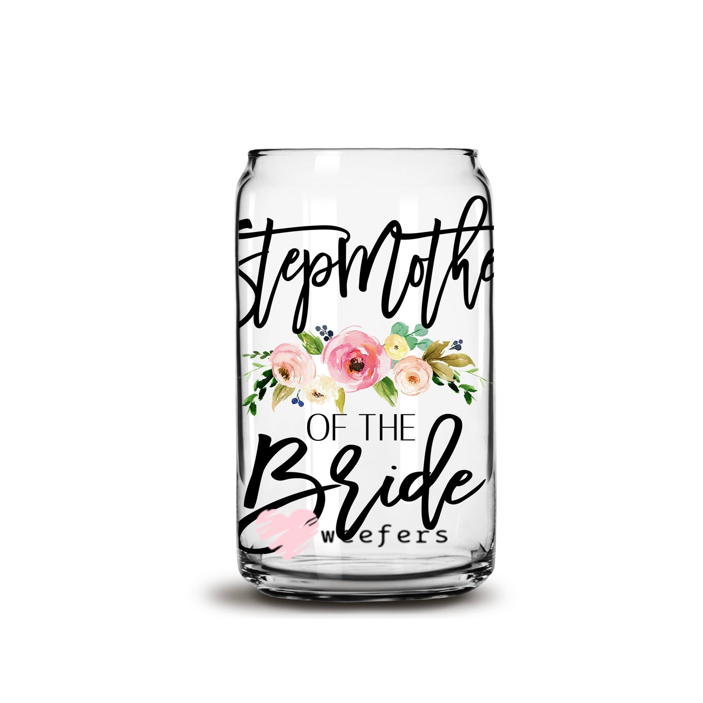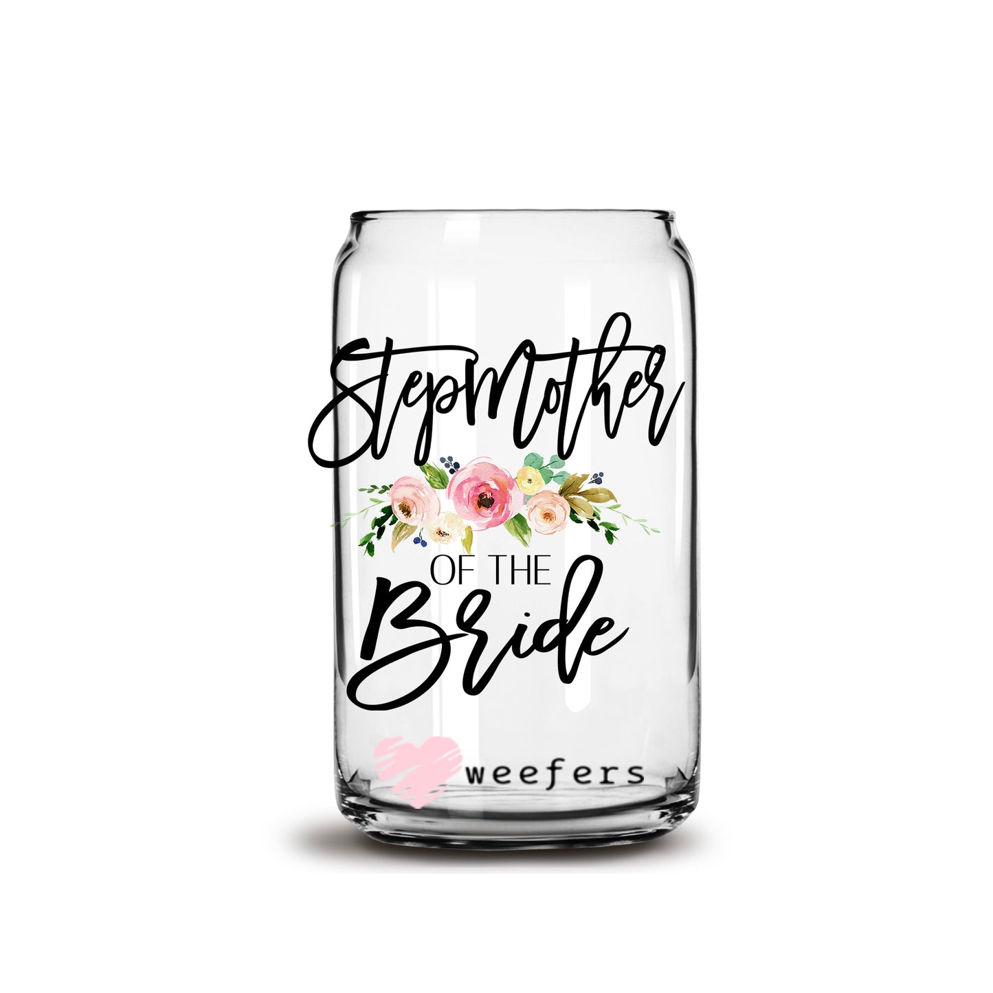 Stepmother of the Bride Blush Floral 16oz Libbey Glass Can UV DTF or Sublimation Wrap - Decal