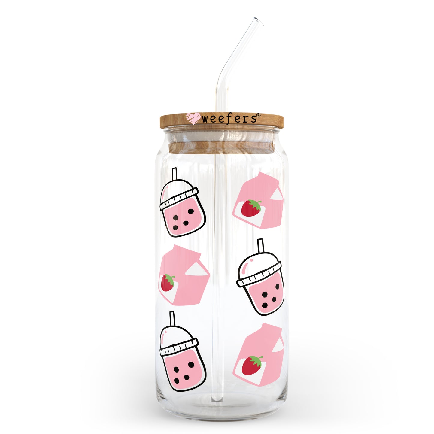 Strawberry Bobas 20oz Libbey Glass Can UV DTF or Sublimation Wrap - Decal