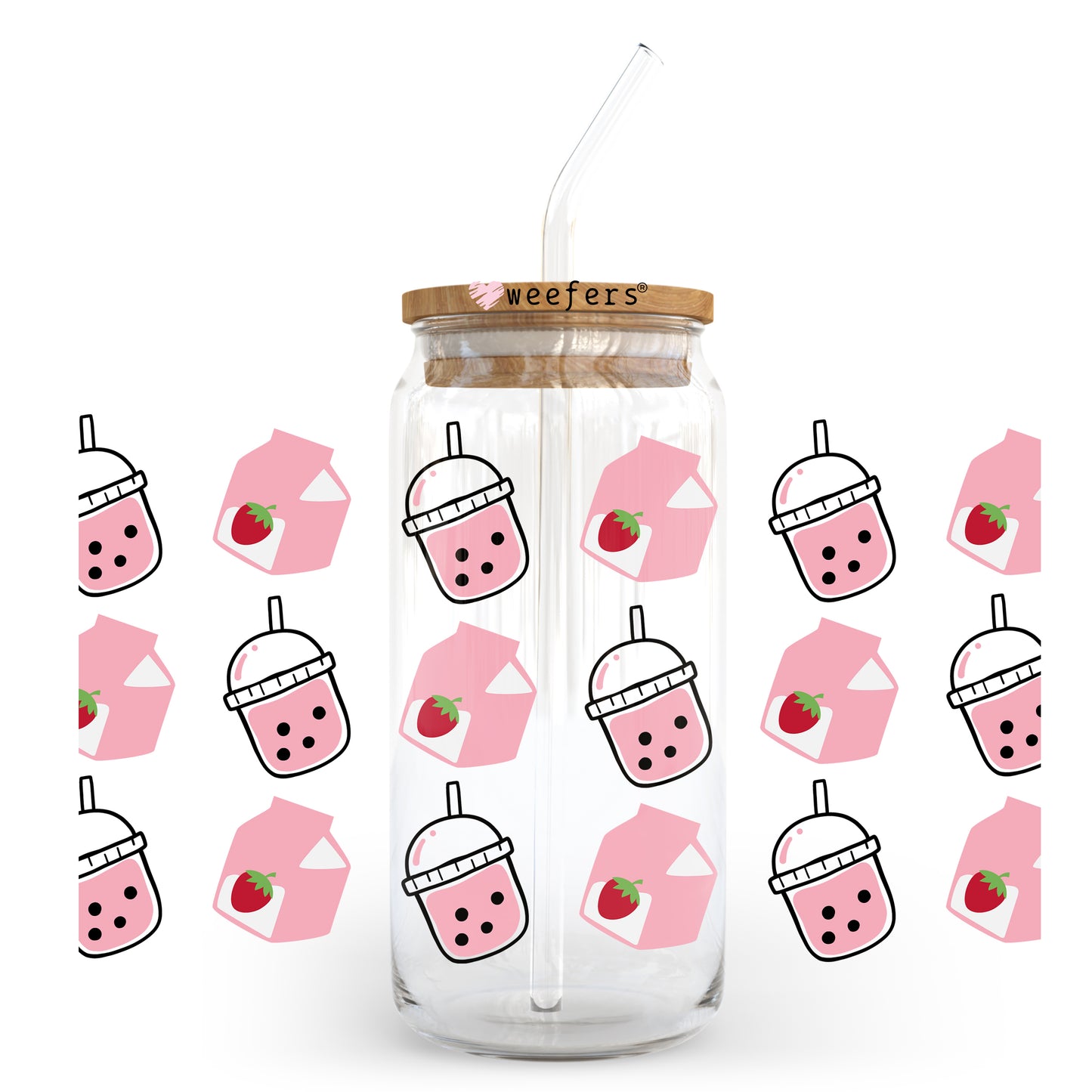 Strawberry Bobas 20oz Libbey Glass Can, 34oz Hip Sip, 40oz Tumbler UV DTF or Sublimation Decal Transfer