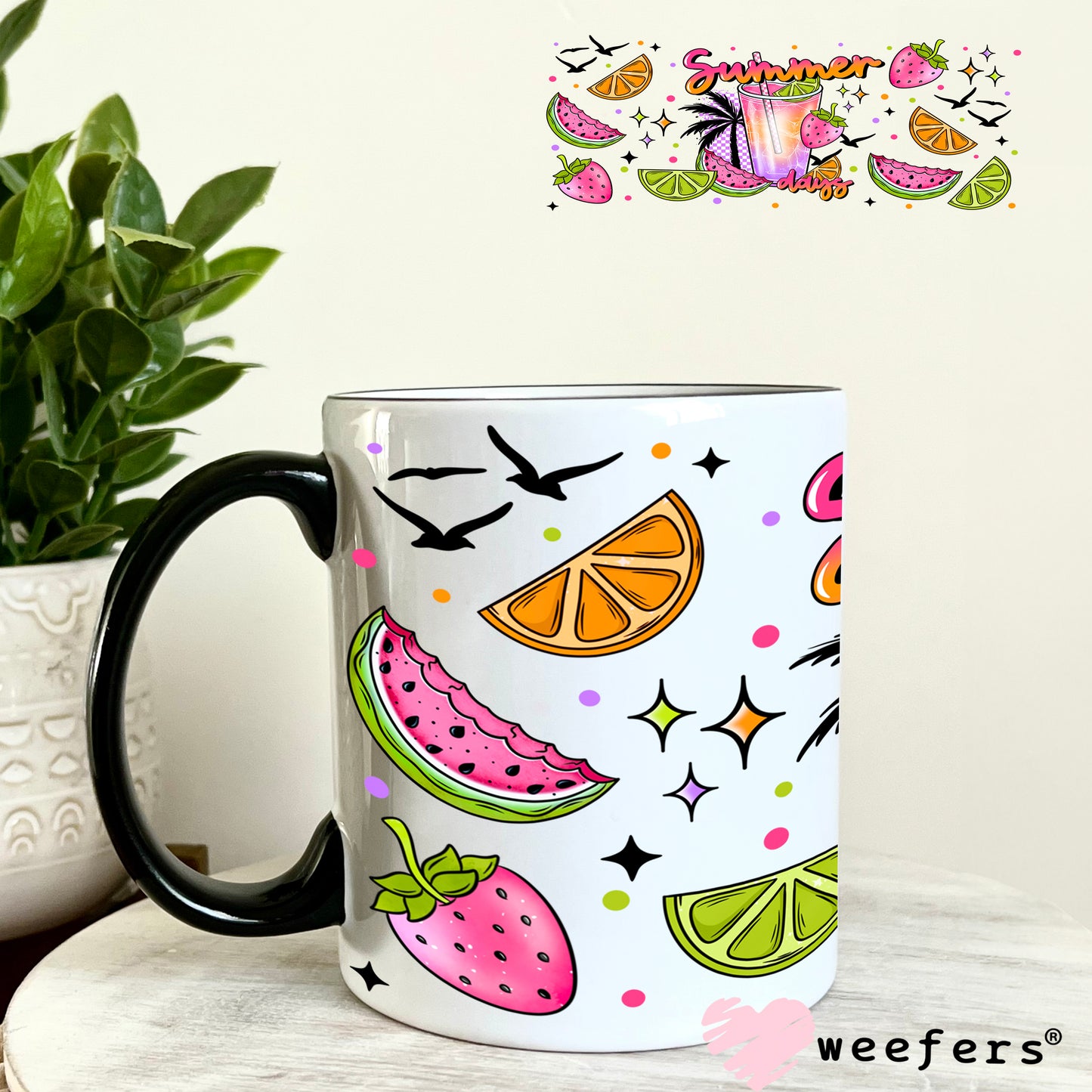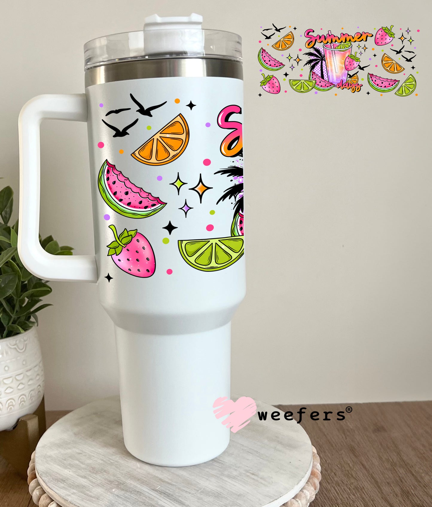 Summer Days Limes Oranges and Strawberries UV DTF Cup Wrap Description