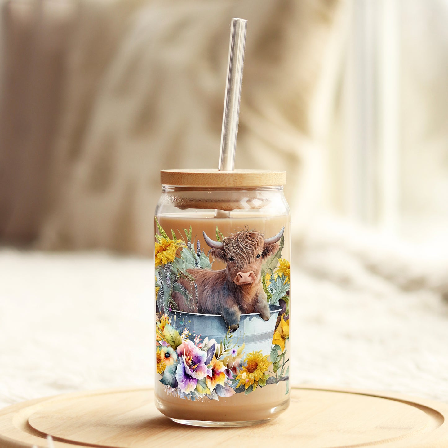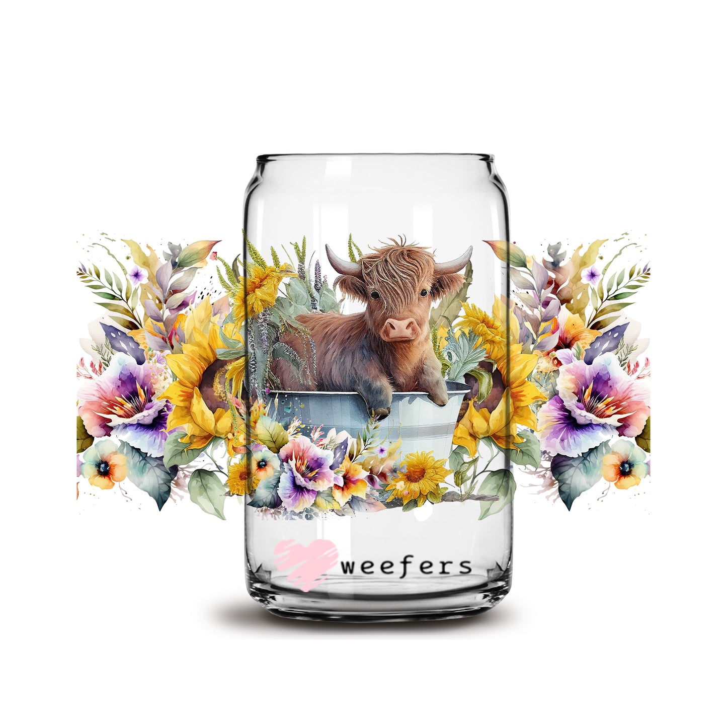 Sunflower Highland baby Cow 16oz Libbey Glass Can UV DTF or Sublimation Cup Wrap - Decal Transfer Description