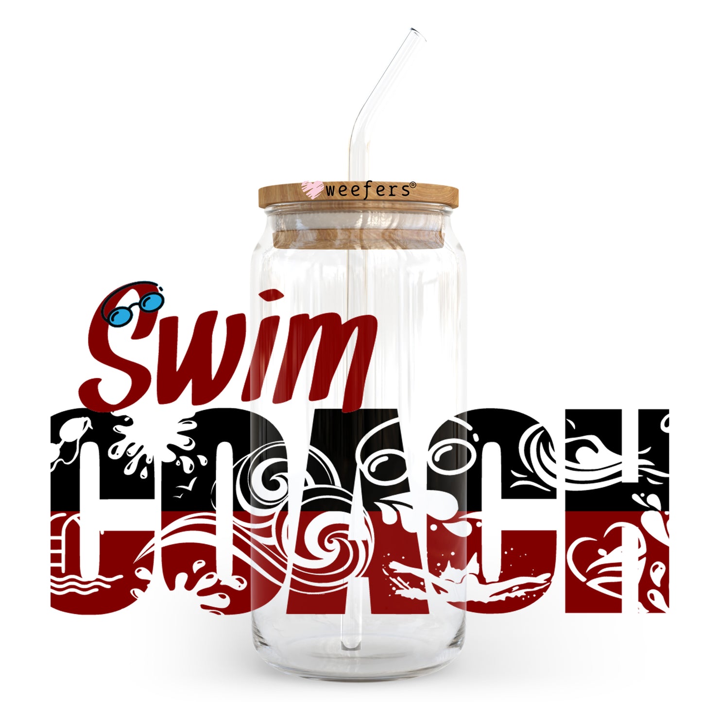 Swim Coach 20oz Libbey Glass Can UV DTF or Sublimation Wrap - Decal