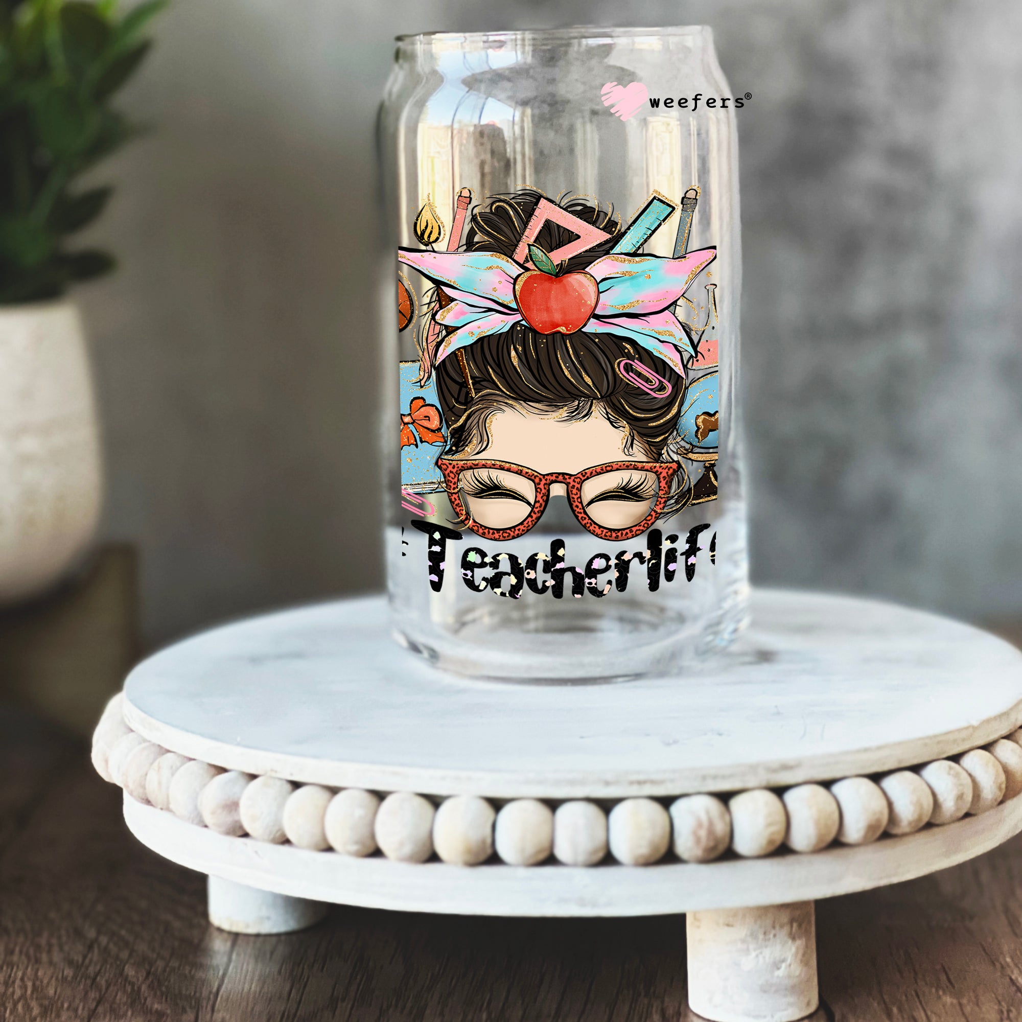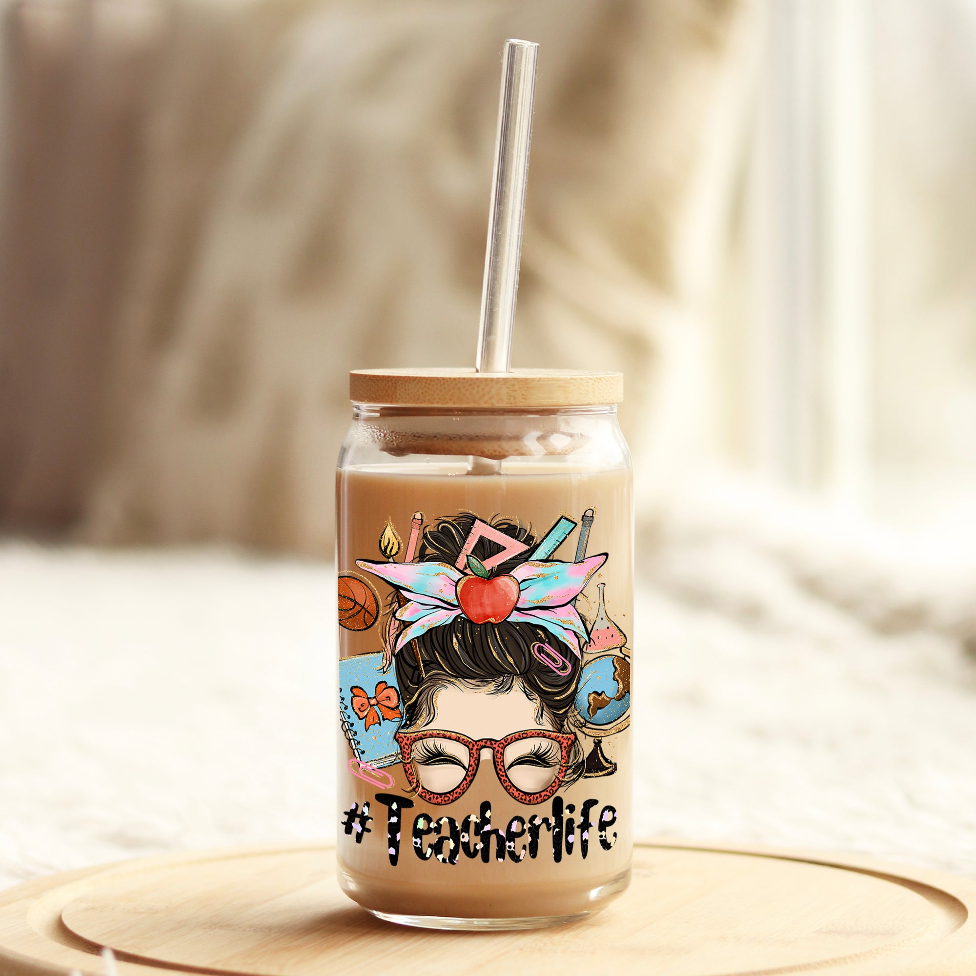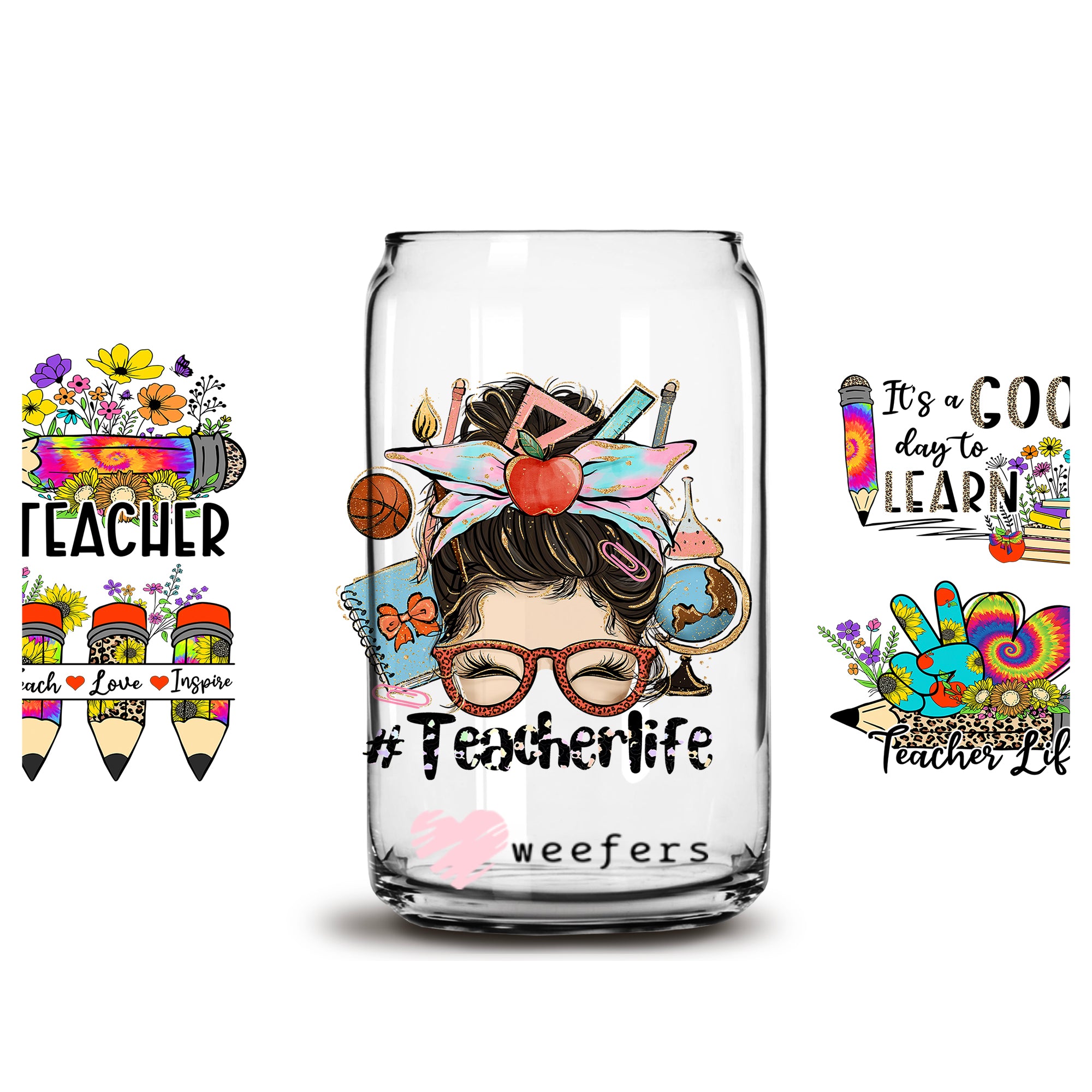 Teacher Life 16oz Libbey Glass Can UV DTF or Sublimation Wrap - Decal Description
