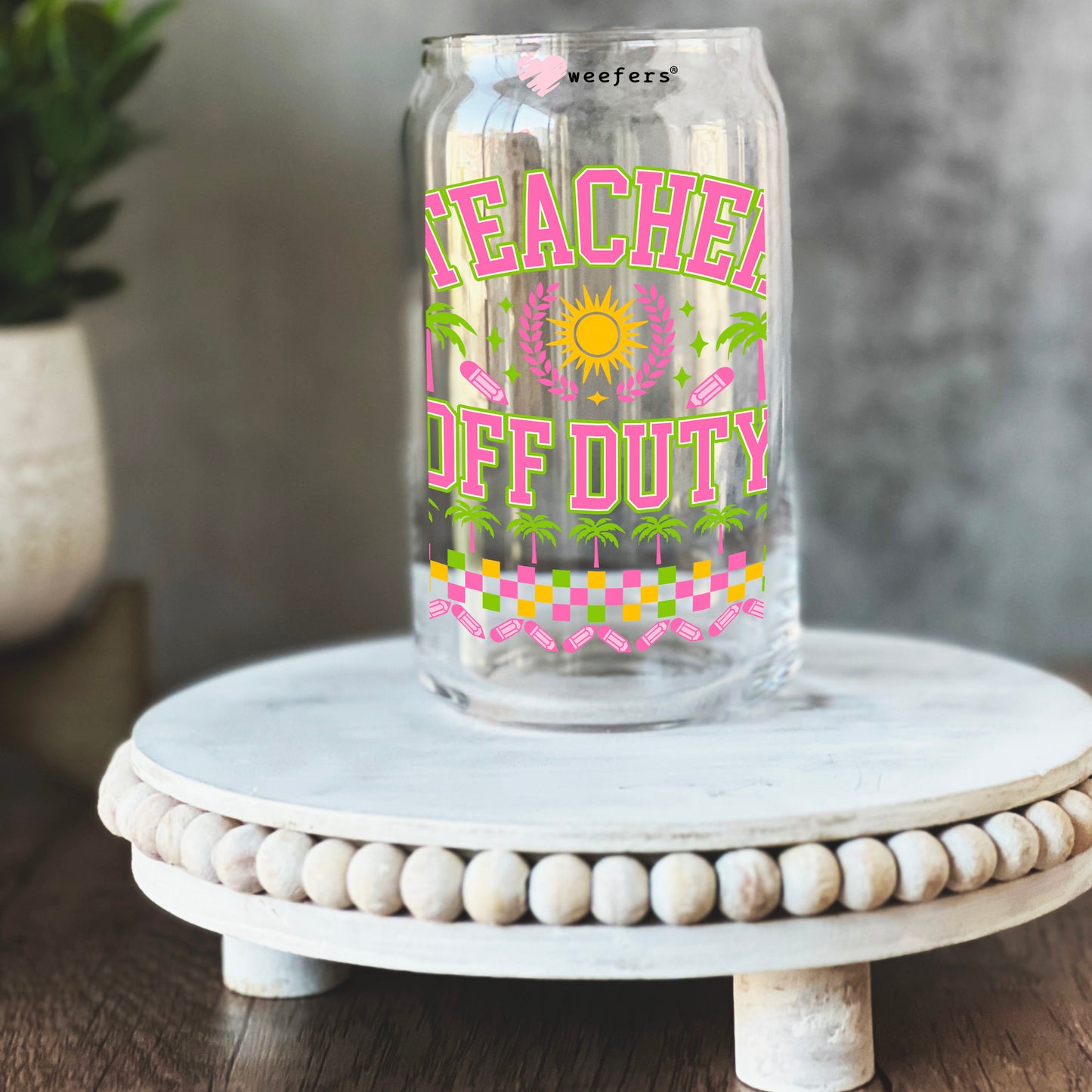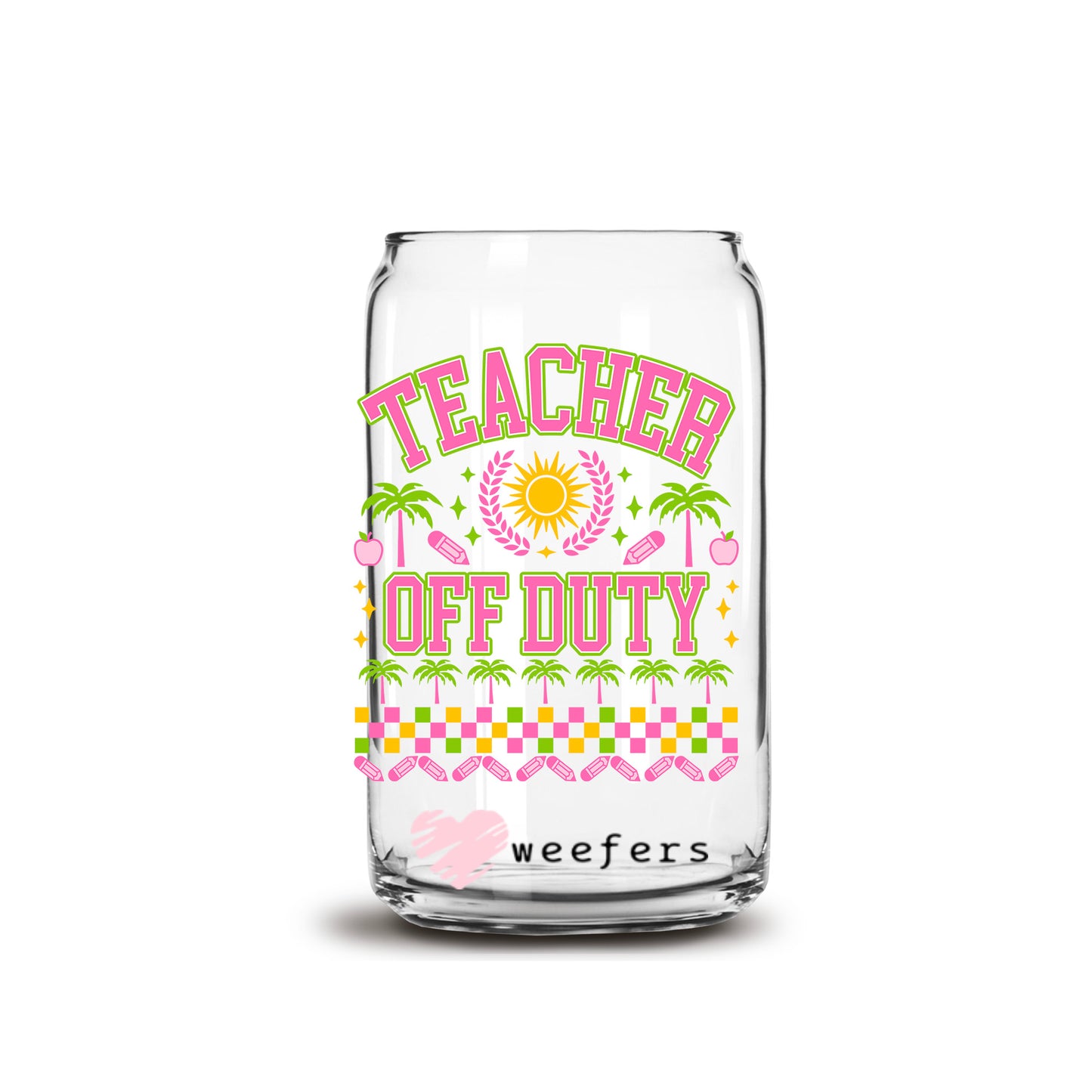 Teacher Off Duty 16oz Libbey Glass Can UV DTF or Sublimation Wrap - Decal Transfer