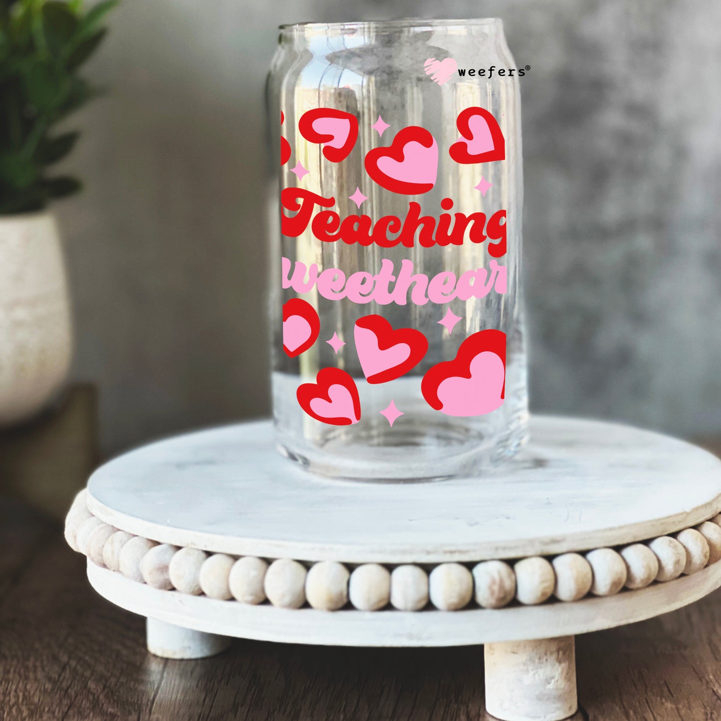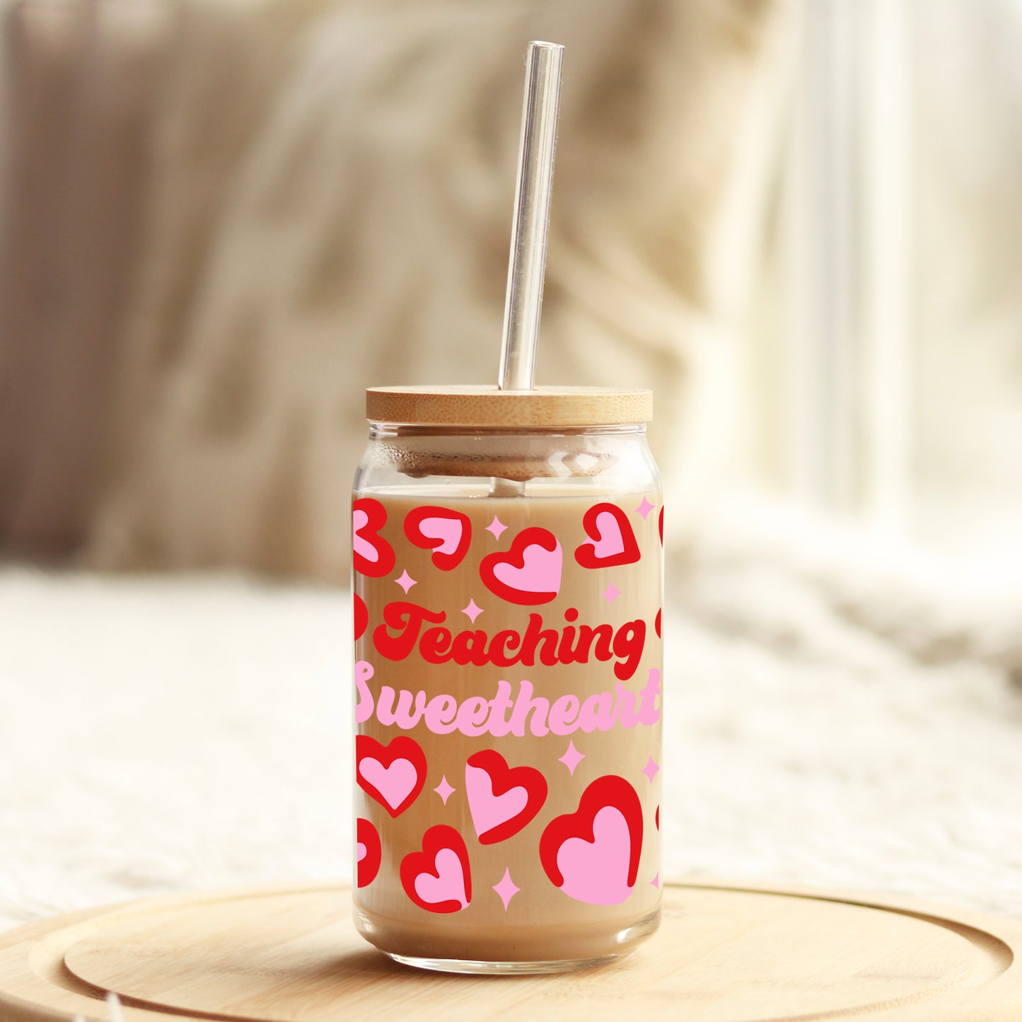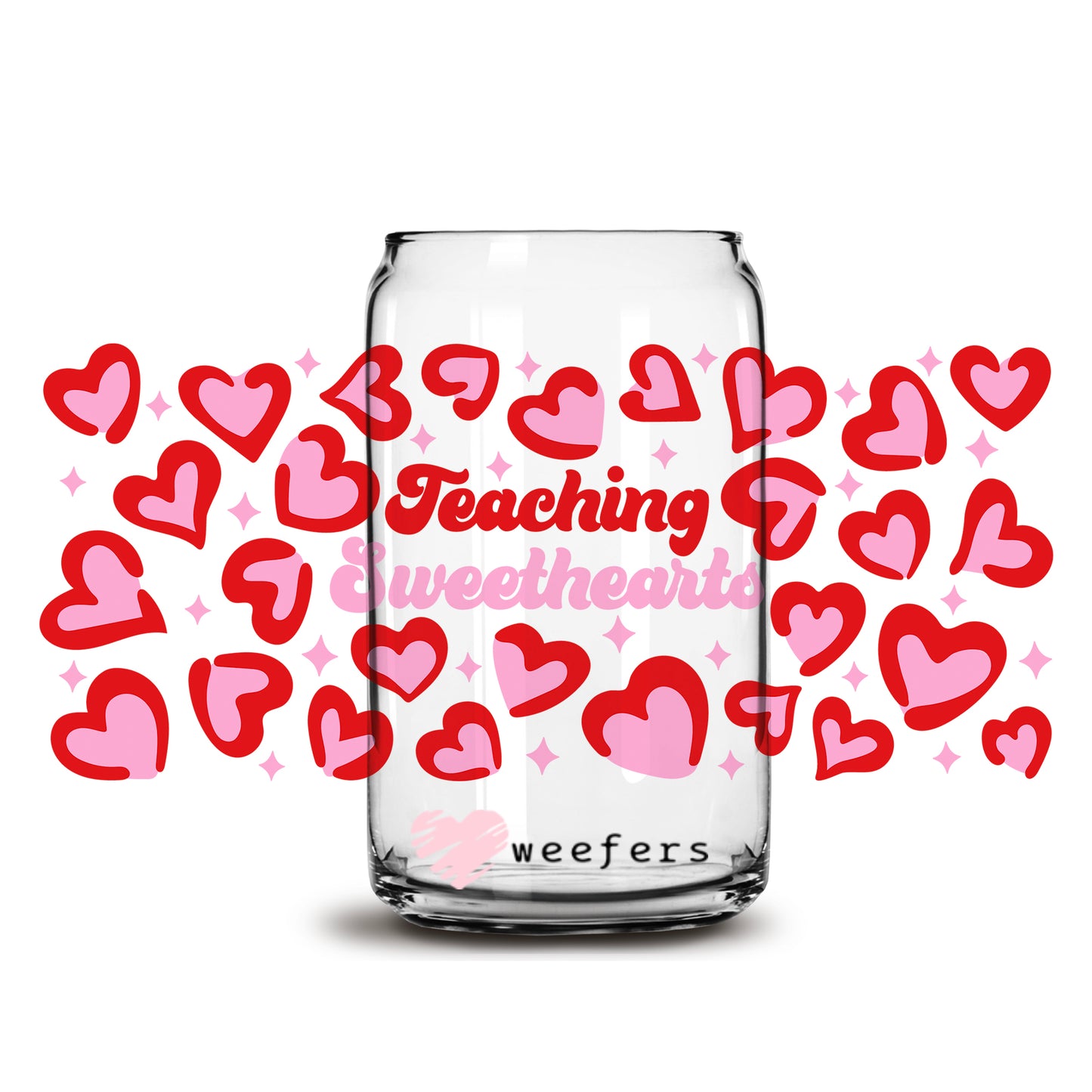 Teaching Sweethearts Teacher Valentine's Day 16oz Libbey Glass Can UV DTF or Sublimation Cup Wrap - Decal Transfer Description