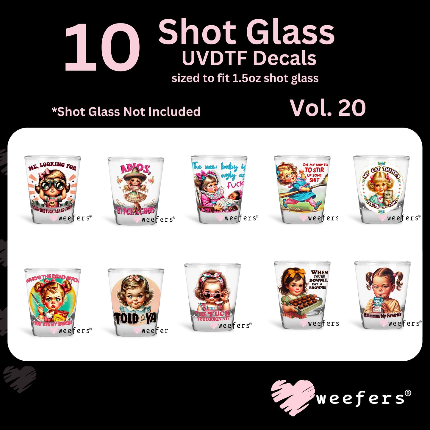 - (10) 1.5oz Heavy Base Shot Glass UV DTF Decals