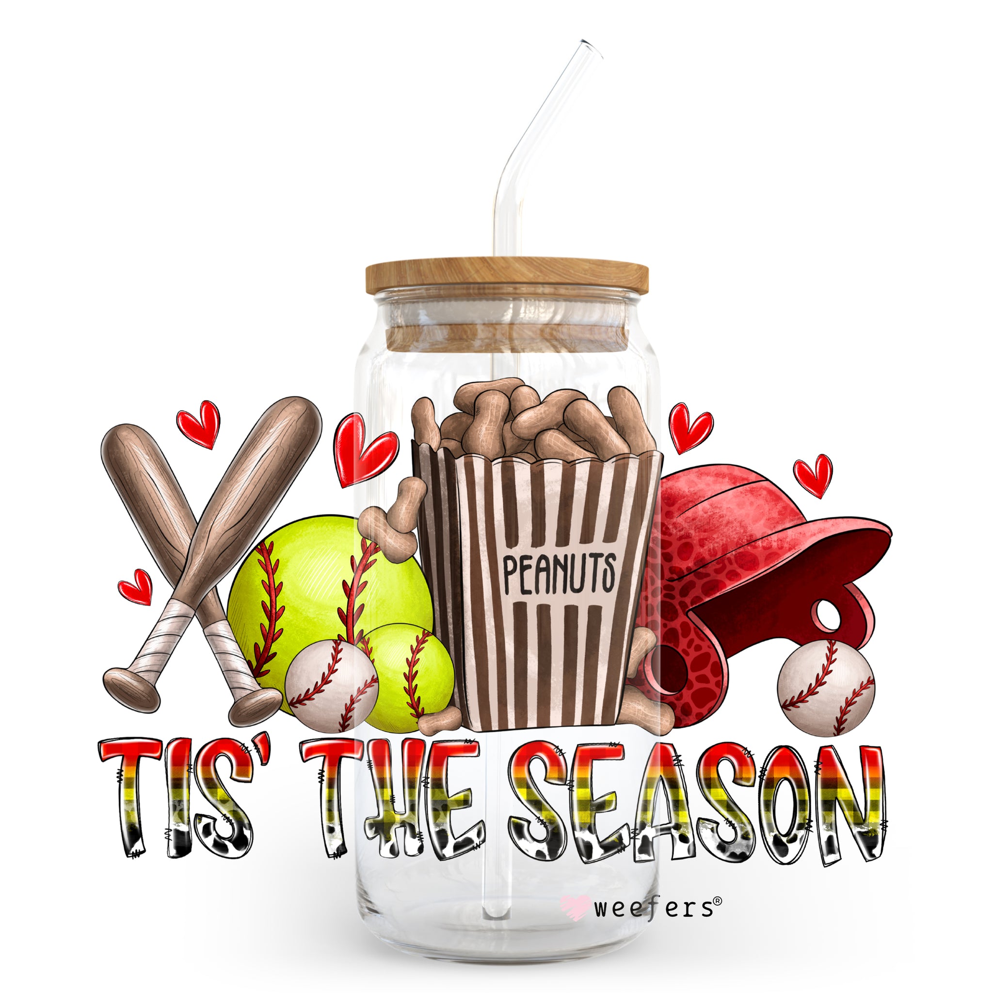 Tis the Season Softball 20oz Libbey Glass Can UV DTF or Sublimation Wrap - Decal