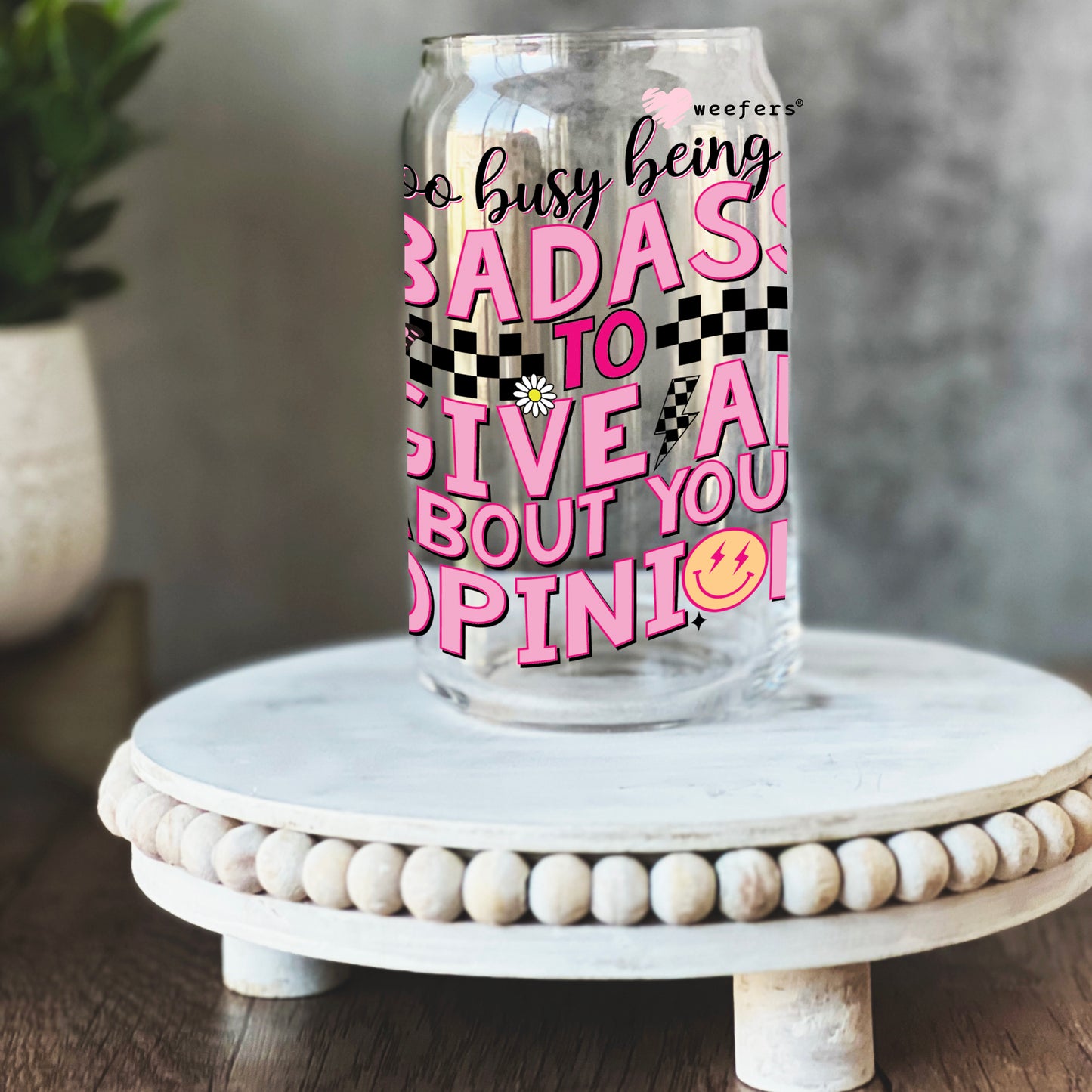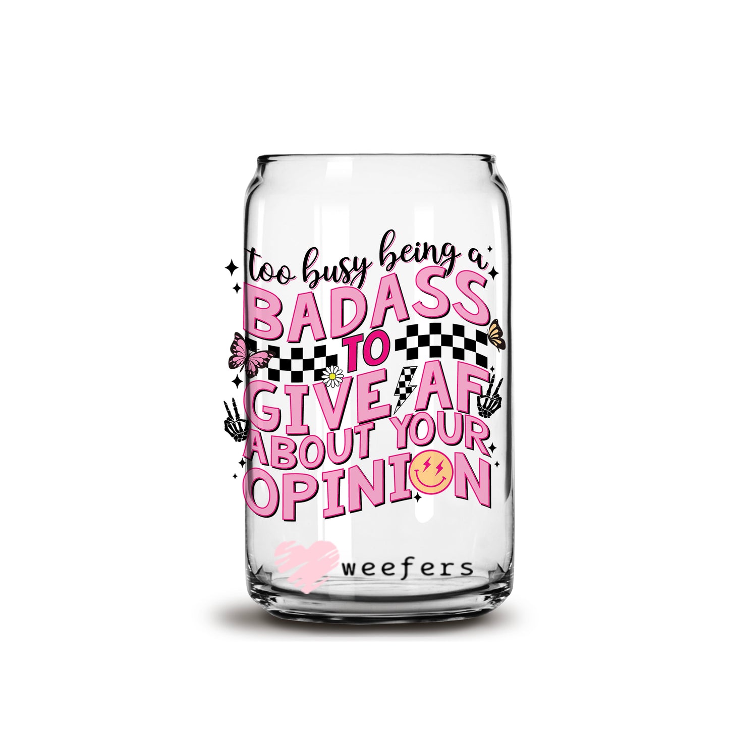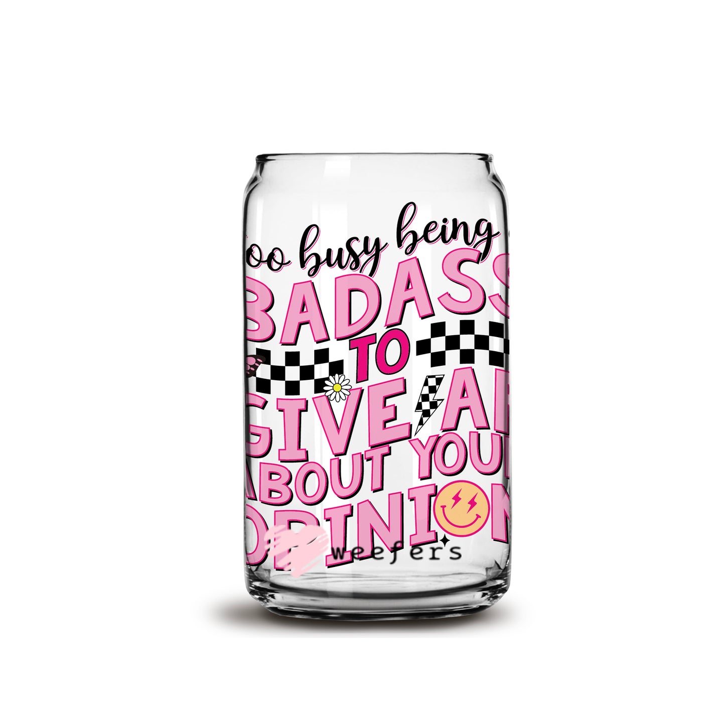 Too Busy Being a Bada$$ to give AF 16oz Libbey Glass Can UV DTF or Sublimation Wrap - Decal