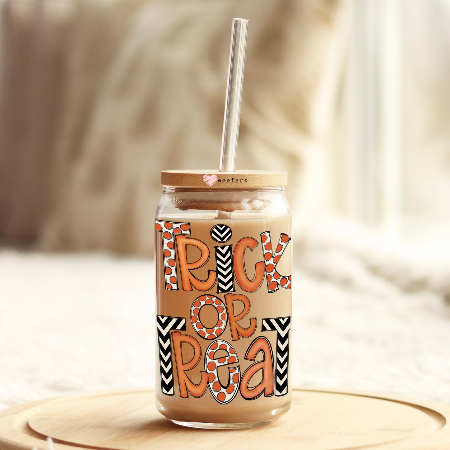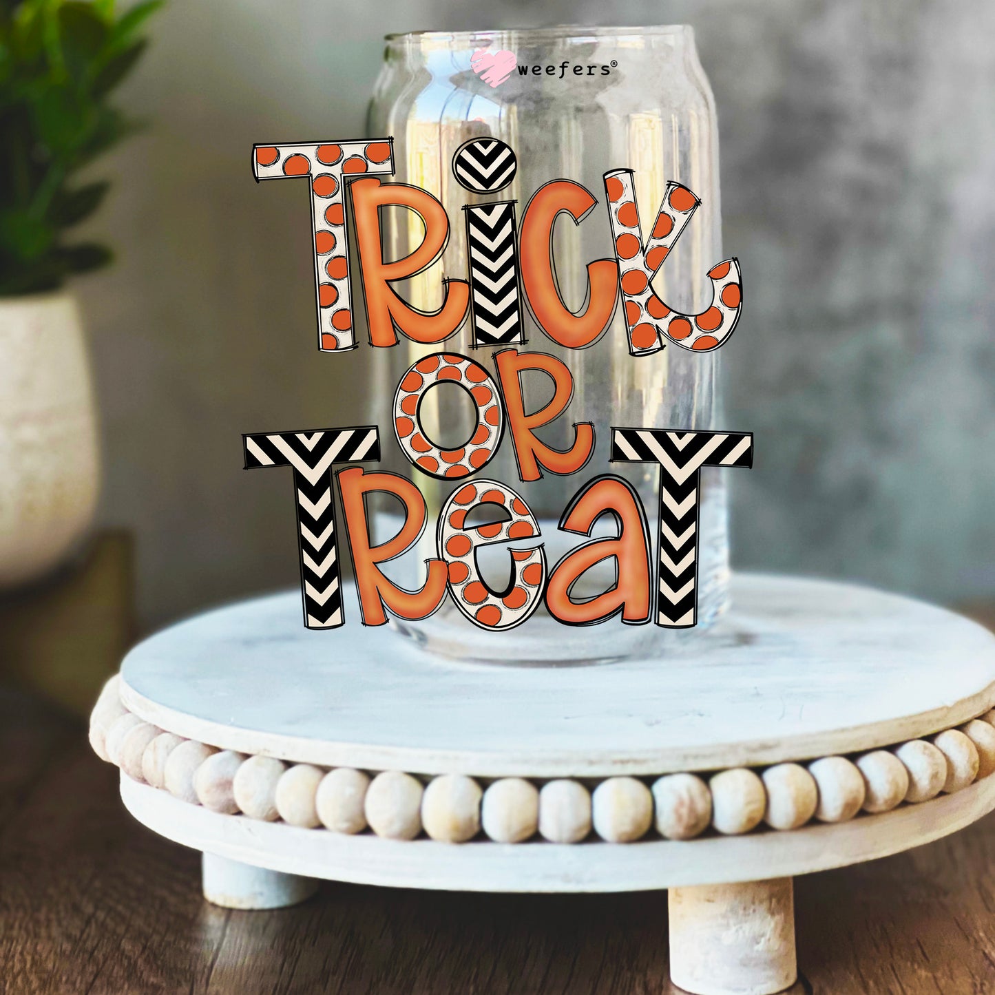 Trick Or Treat 16oz Libbey Glass Can UV DTF or Sublimation Wrap Decal Transfer