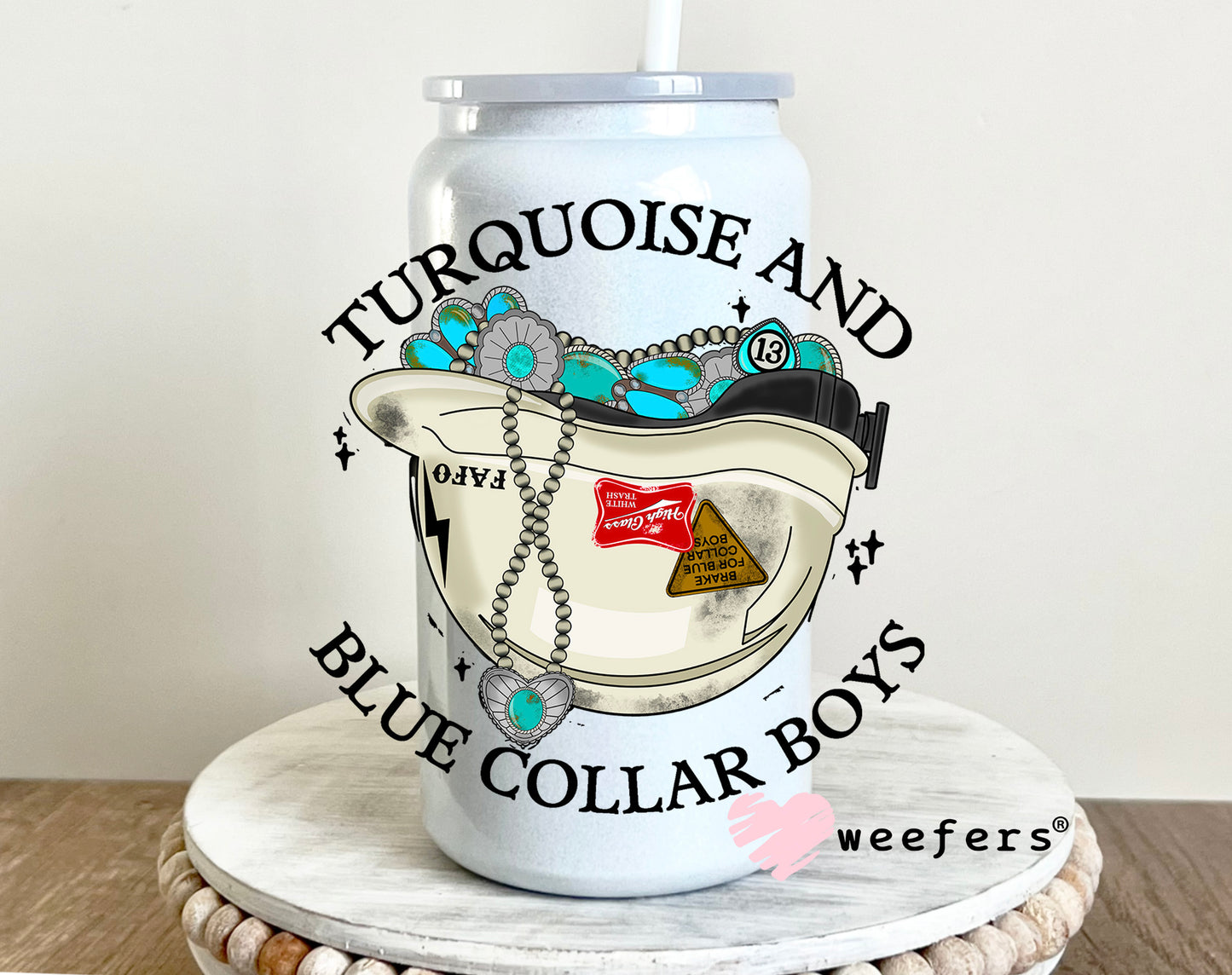 Turquoise and Blue Collar Boys UV DTF Decal Description