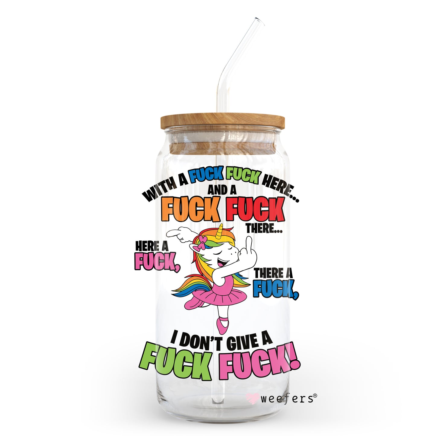 Unicorn F Here F There Fire 20oz Libbey Glass Can UV DTF or Sublimation Wrap - Decal