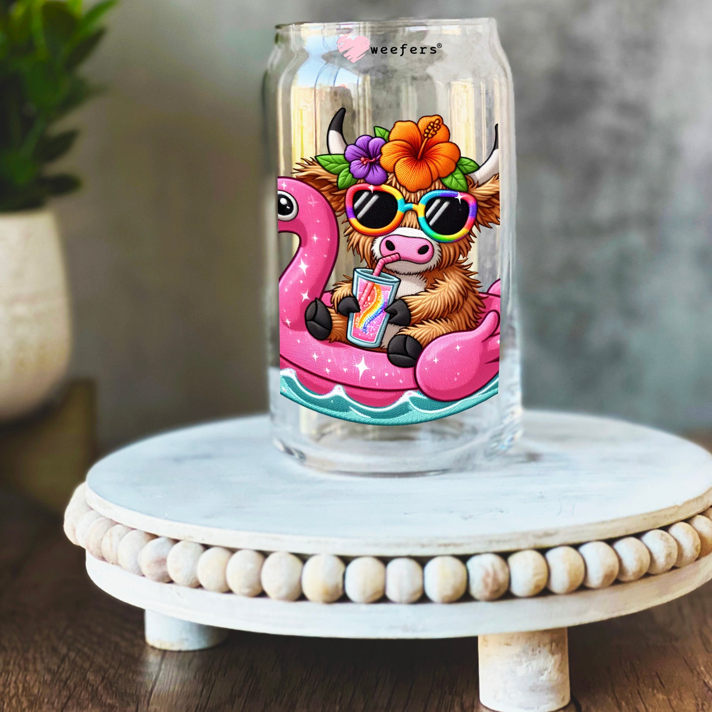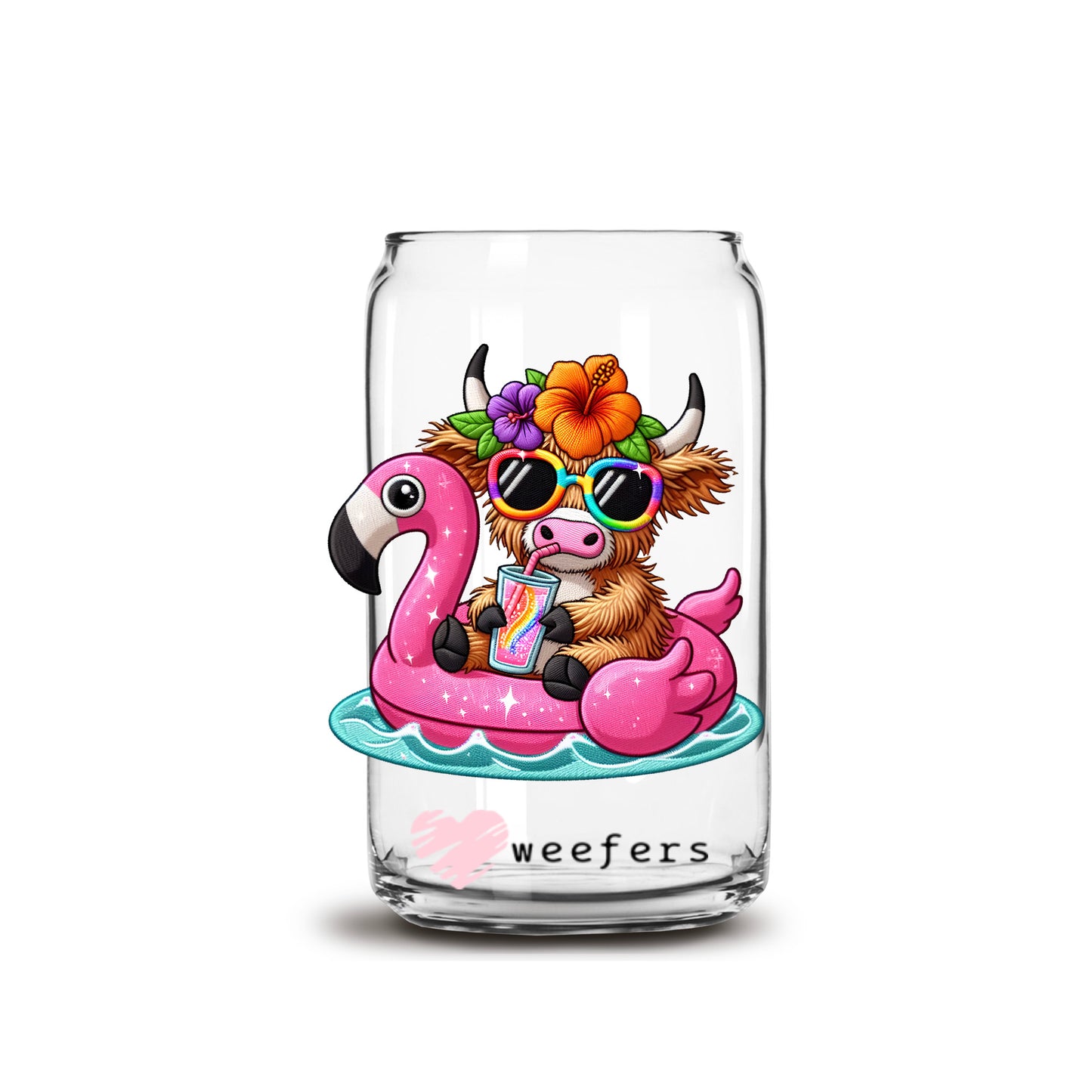 Vacay Highlander Cow Flamingo Floaty 16oz Libbey Glass Can UV DTF or Sublimation Decal - Transfer