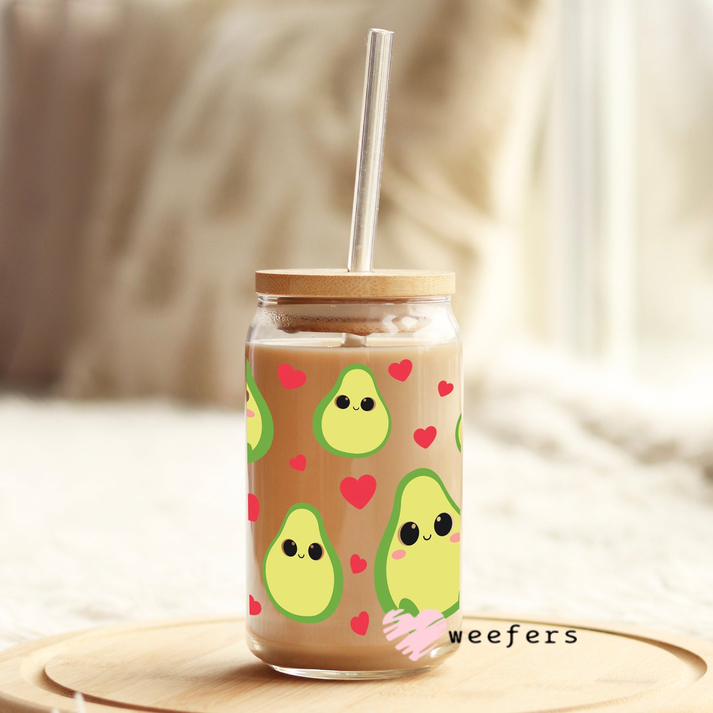 Valentine Avocado Cuties Libbey Glass Can UV DTF or Sublimation Wrap Description