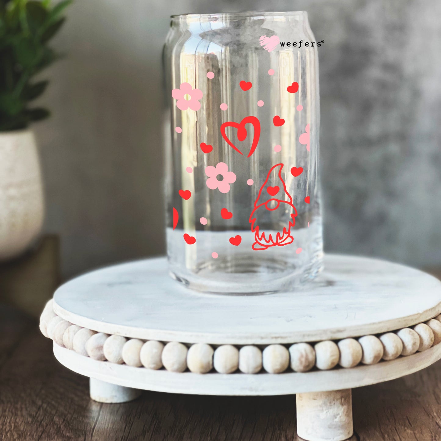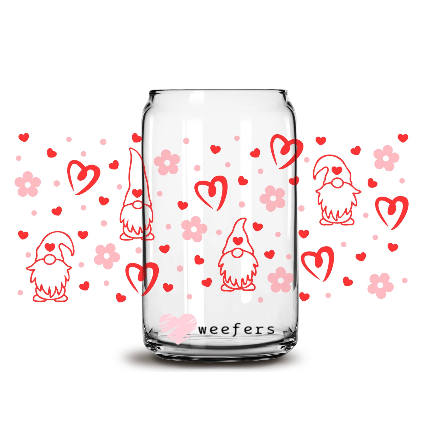 Valentine Hearts and Gnomes 16oz Libbey Glass Can UV DTF or Sublimation Cup Wrap - Decal Transfer
