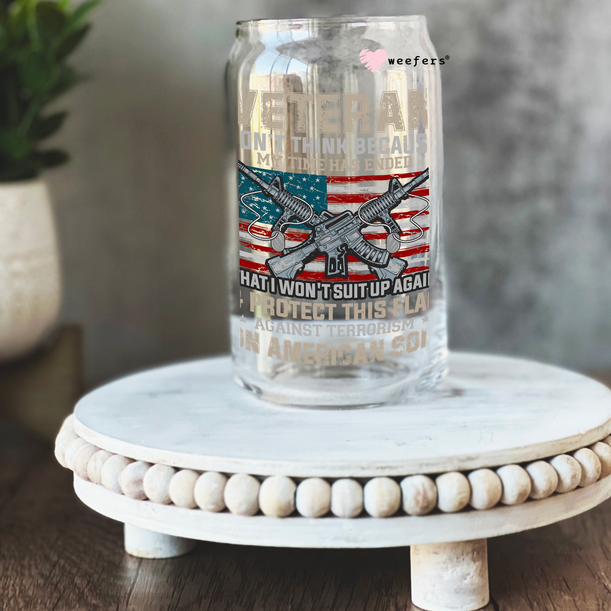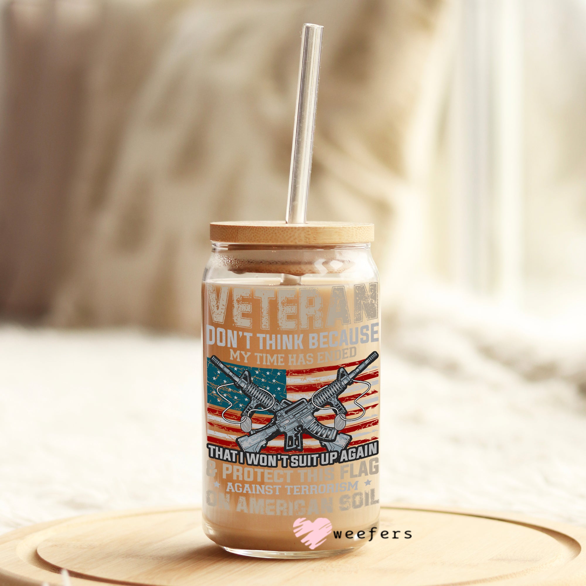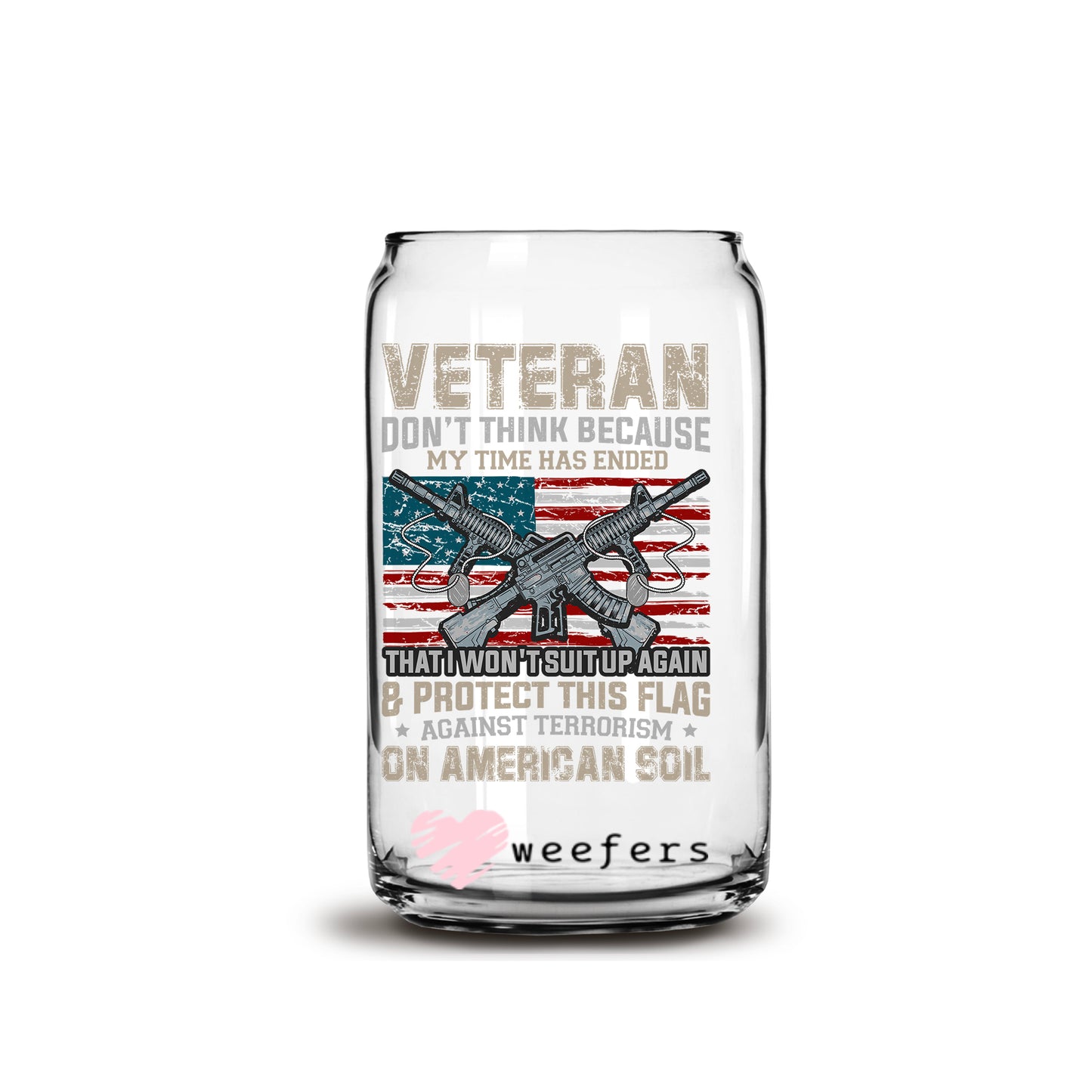 Veteran Don't think Because My Time as ended 16oz Libbey Glass Can UV DTF or Sublimation Wrap - Decal Description