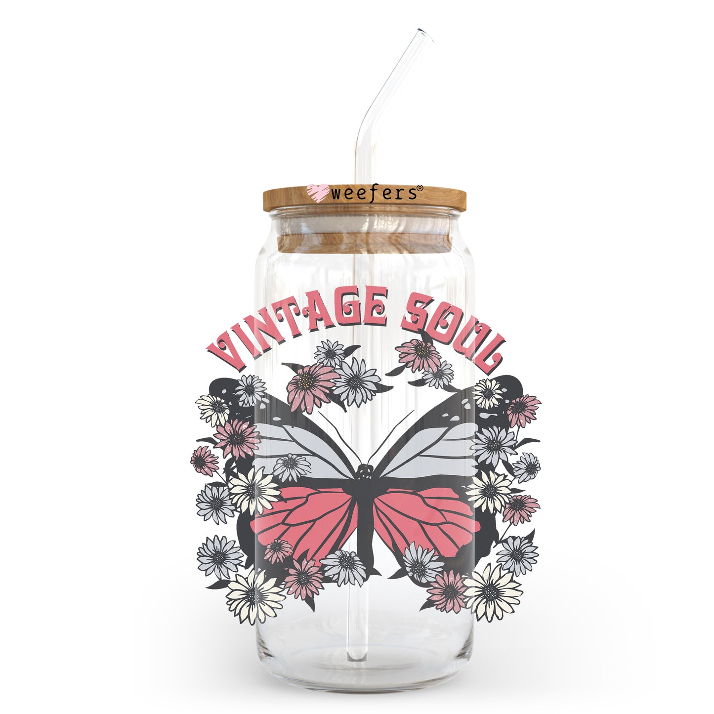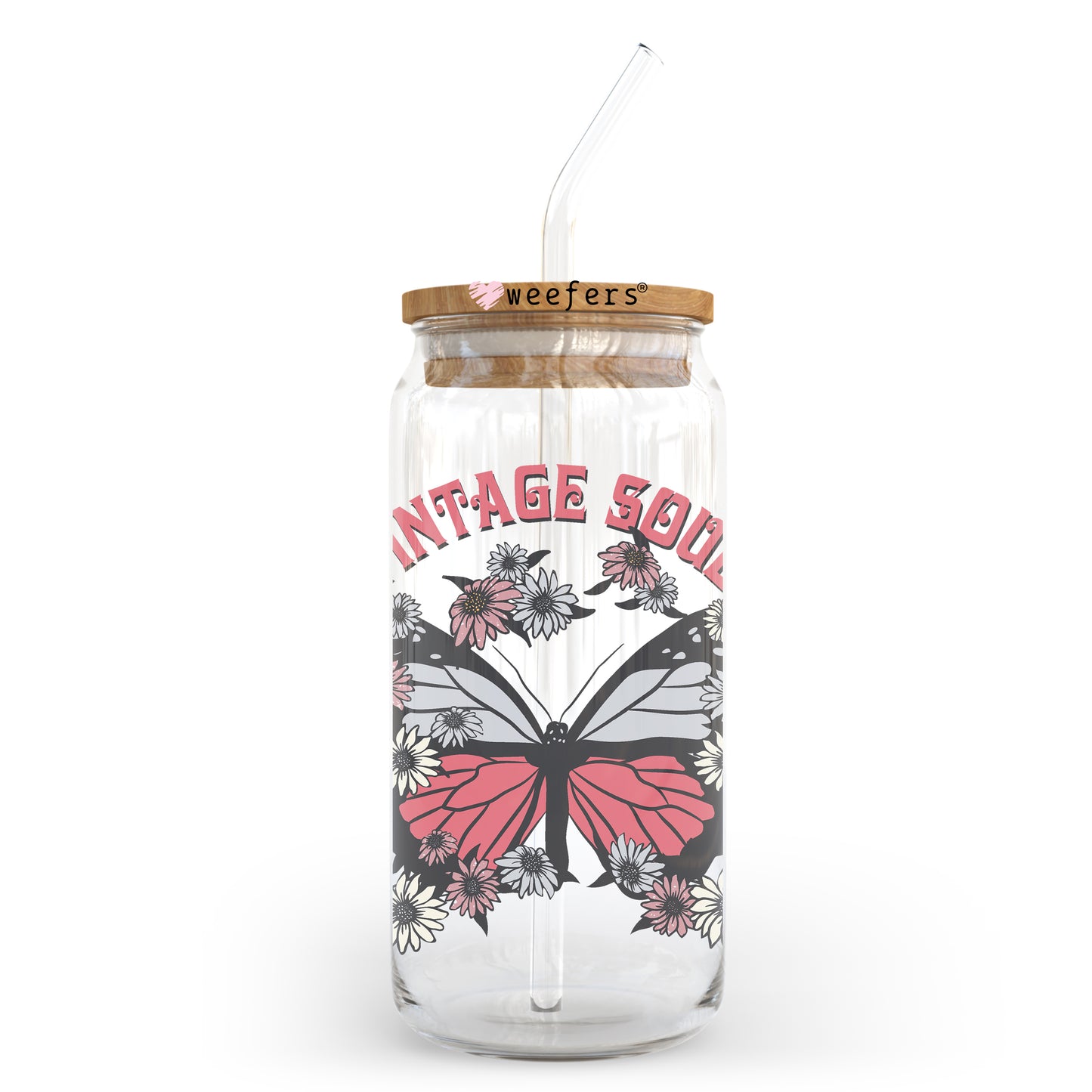 Vintage Soul Butterfly 20oz Libbey Glass Can UV DTF or Sublimation Wrap - Decal Description
