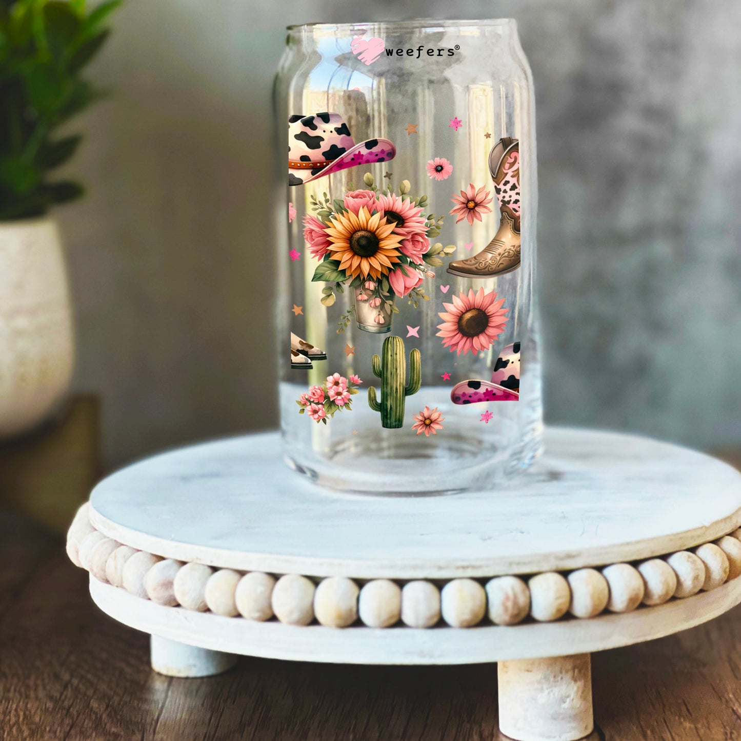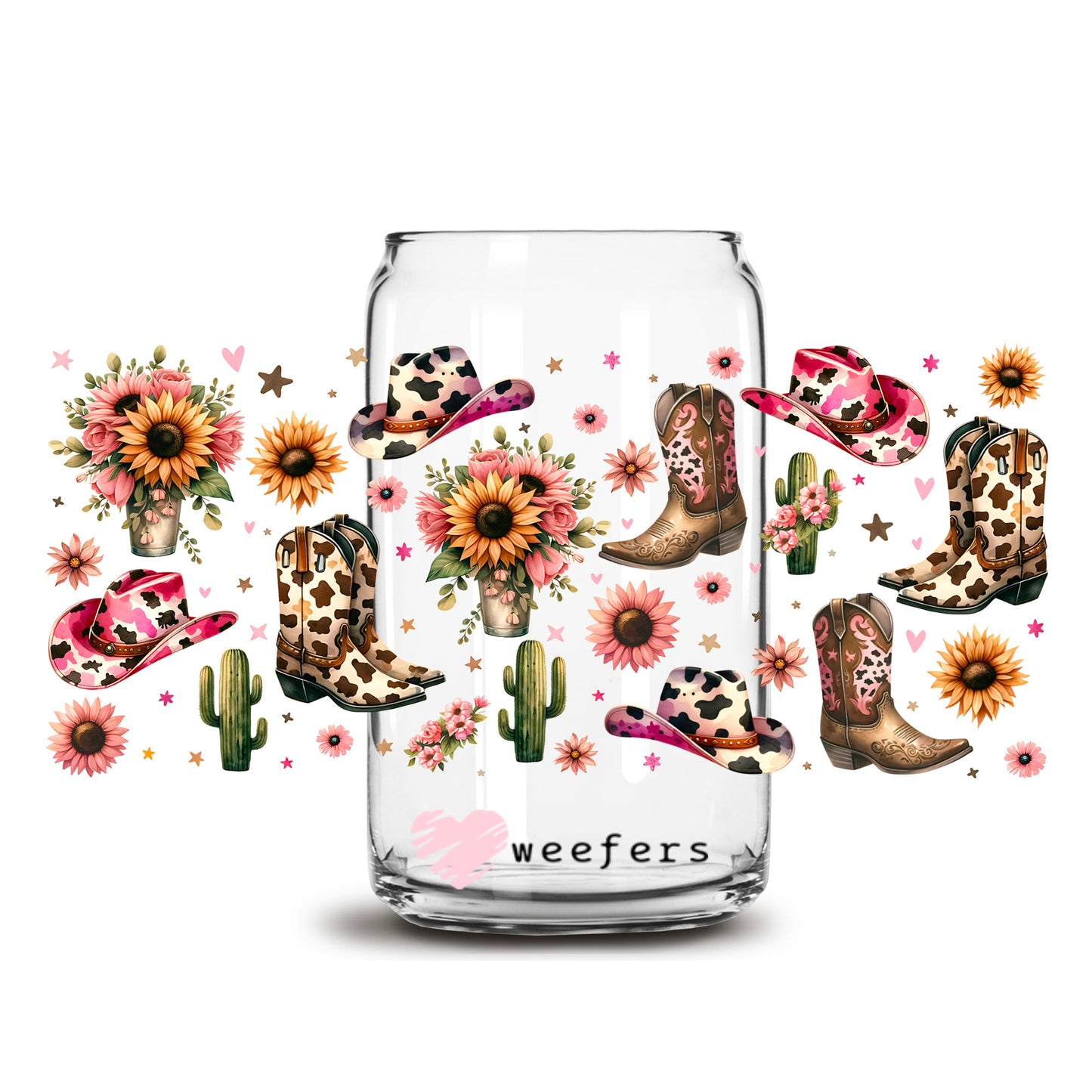Western Sunflower Cowboy Boots 16oz Libbey Glass Can UV DTF or Sublimation Wrap - Transfer Description
