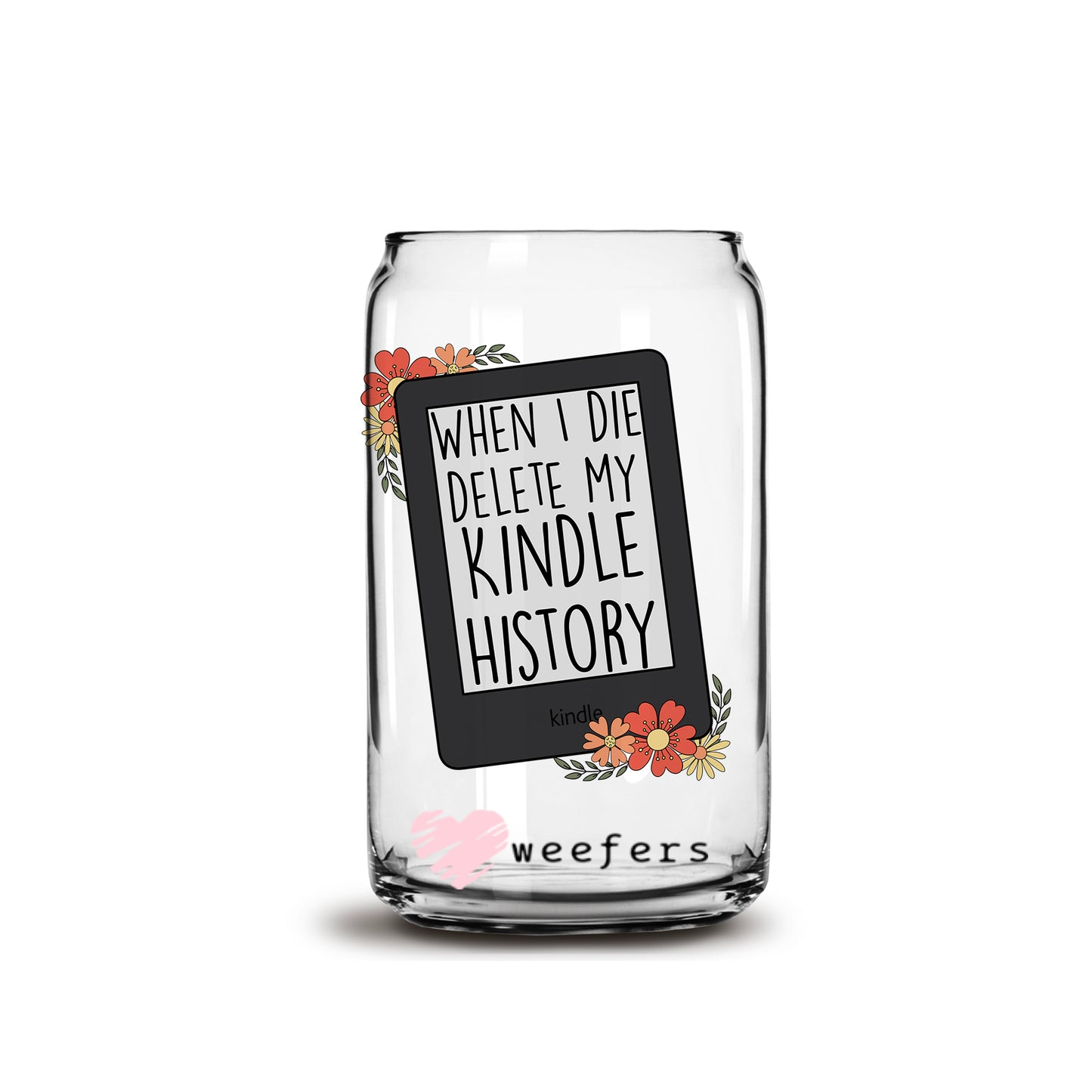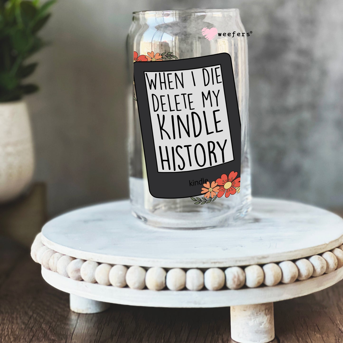 When I Die Please Delete My Kindle History 16oz Libbey Glass Can UV DTF or Sublimation Cup Wrap - Decal Transfer