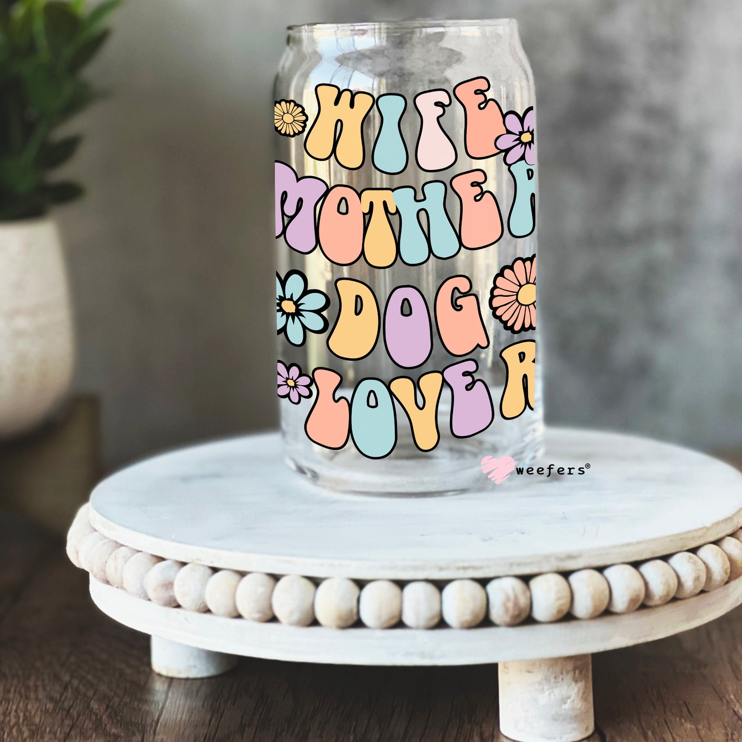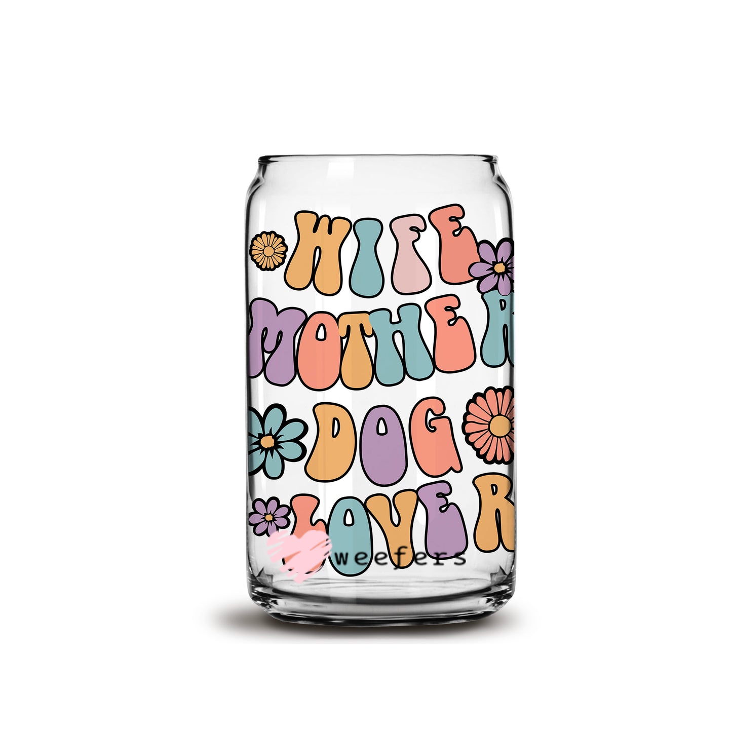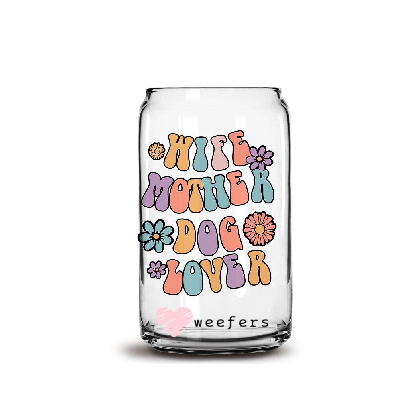 Wife Mother Dog Lover Libbey Glass Can UV DTF or Sublimation Wrap Description