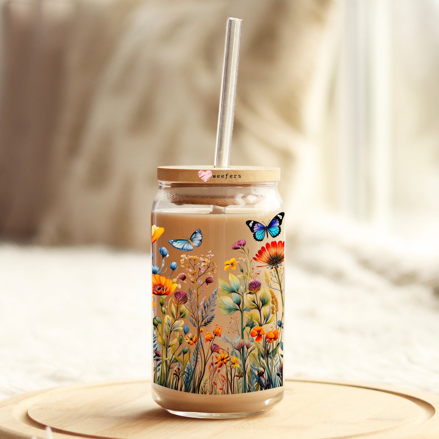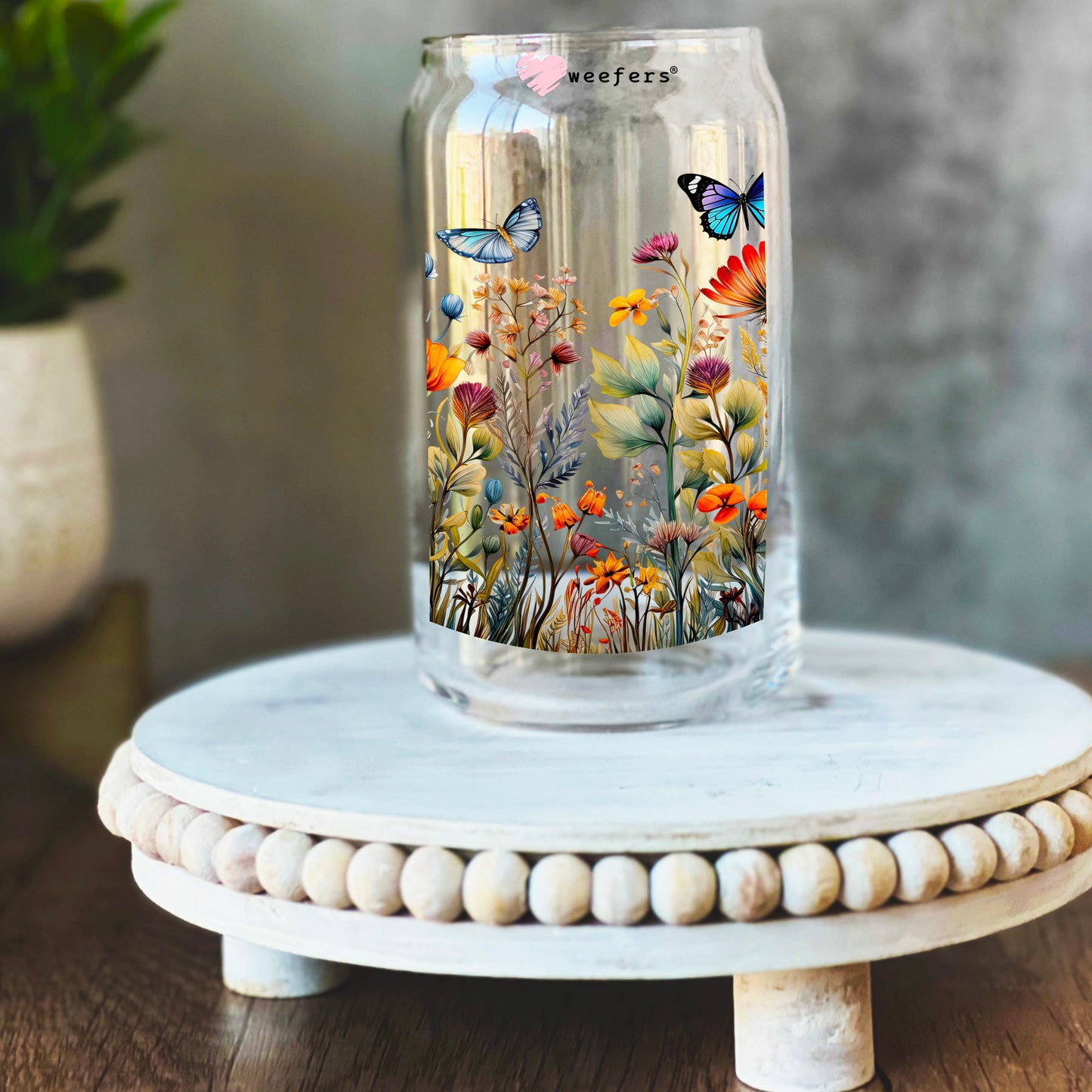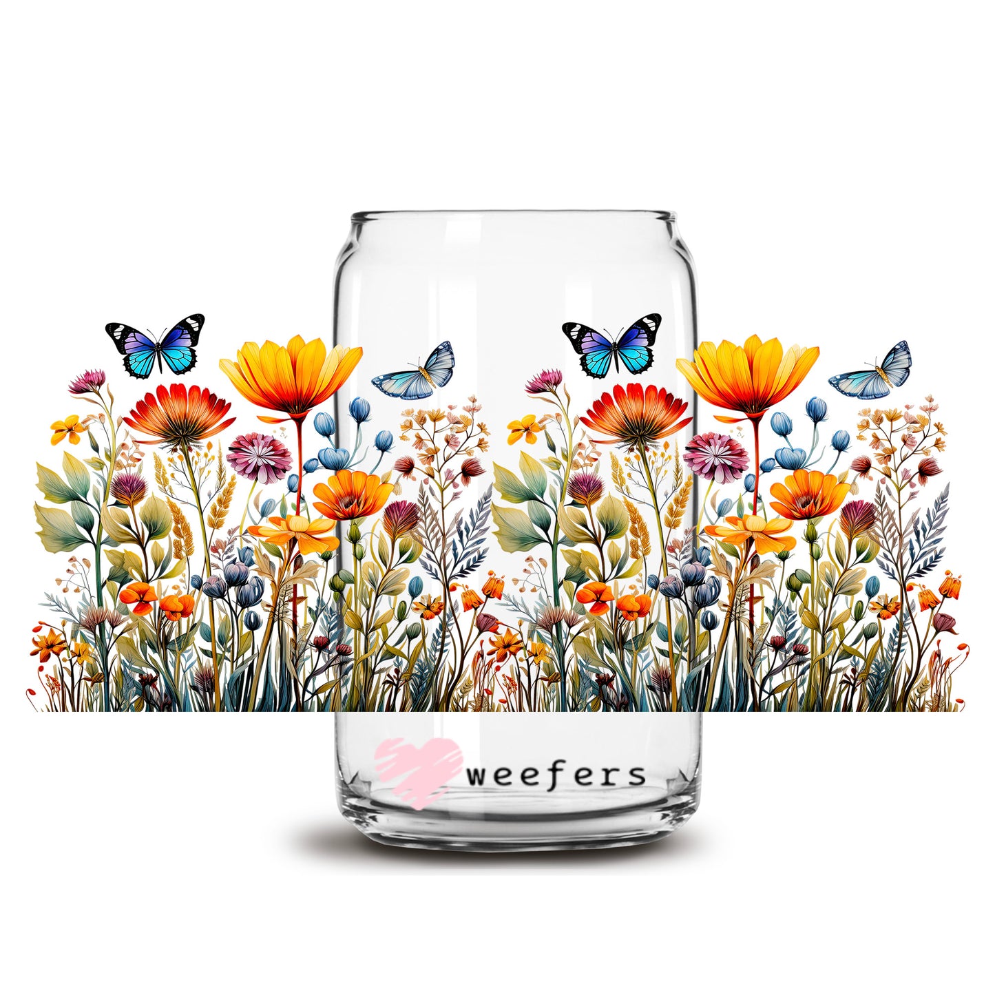 Wild Flower Butterflies 16oz Libbey Glass Can UV DTF or Sublimation Wrap - Transfer Description