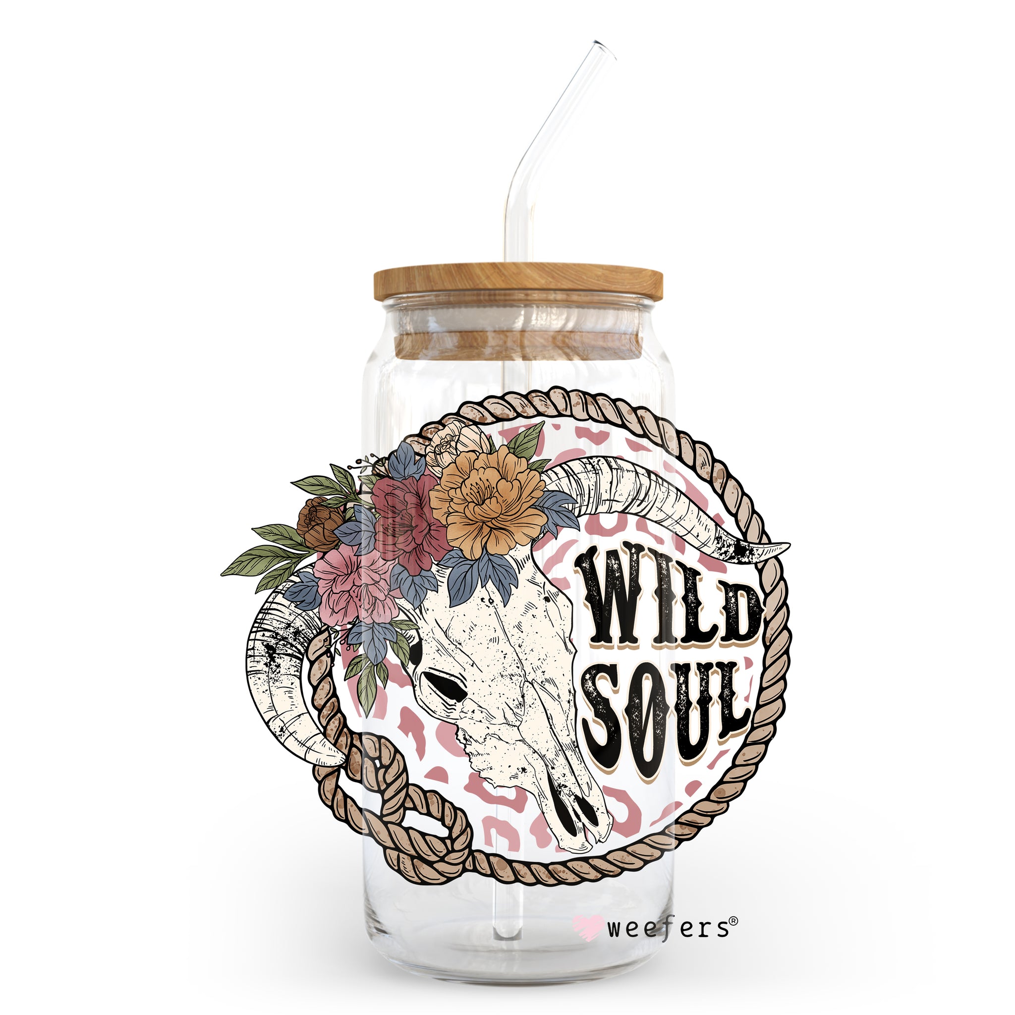 Wild Soul Skull 20oz Libbey Glass Can, 34oz Hip Sip, 40oz Tumbler UV DTF or Sublimation Decal Transfer