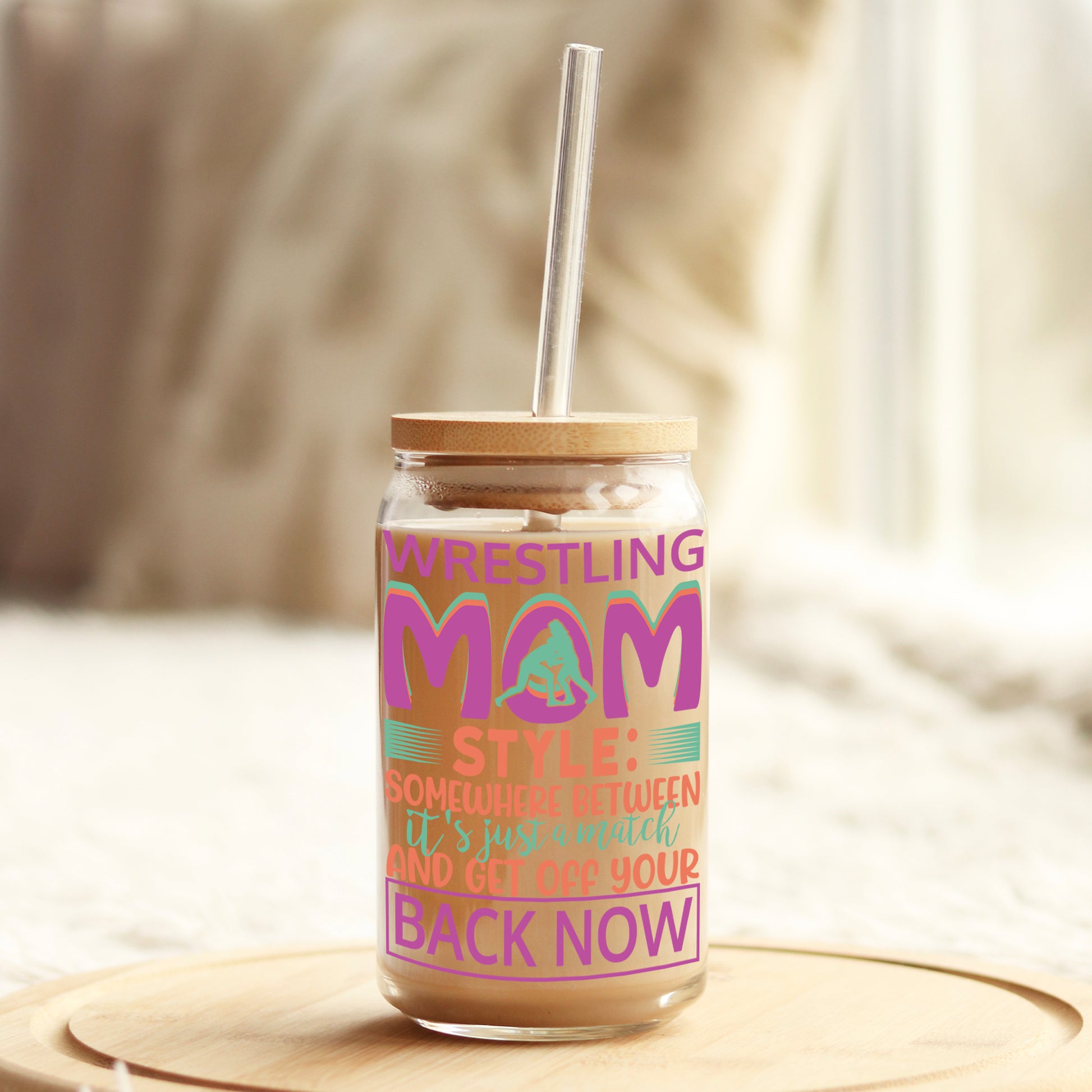 Wrestling Mom 16oz Libbey Glass Can UV DTF or Sublimation Wrap - Decal Description