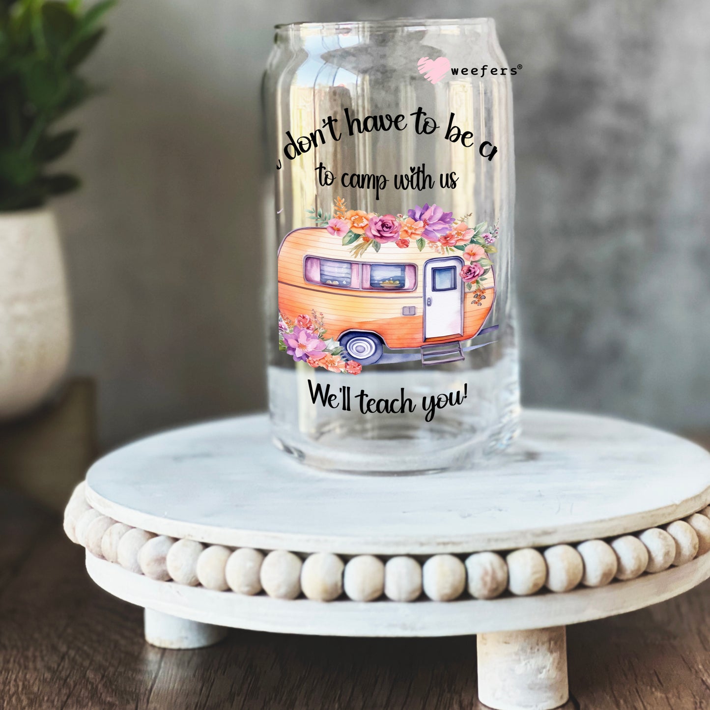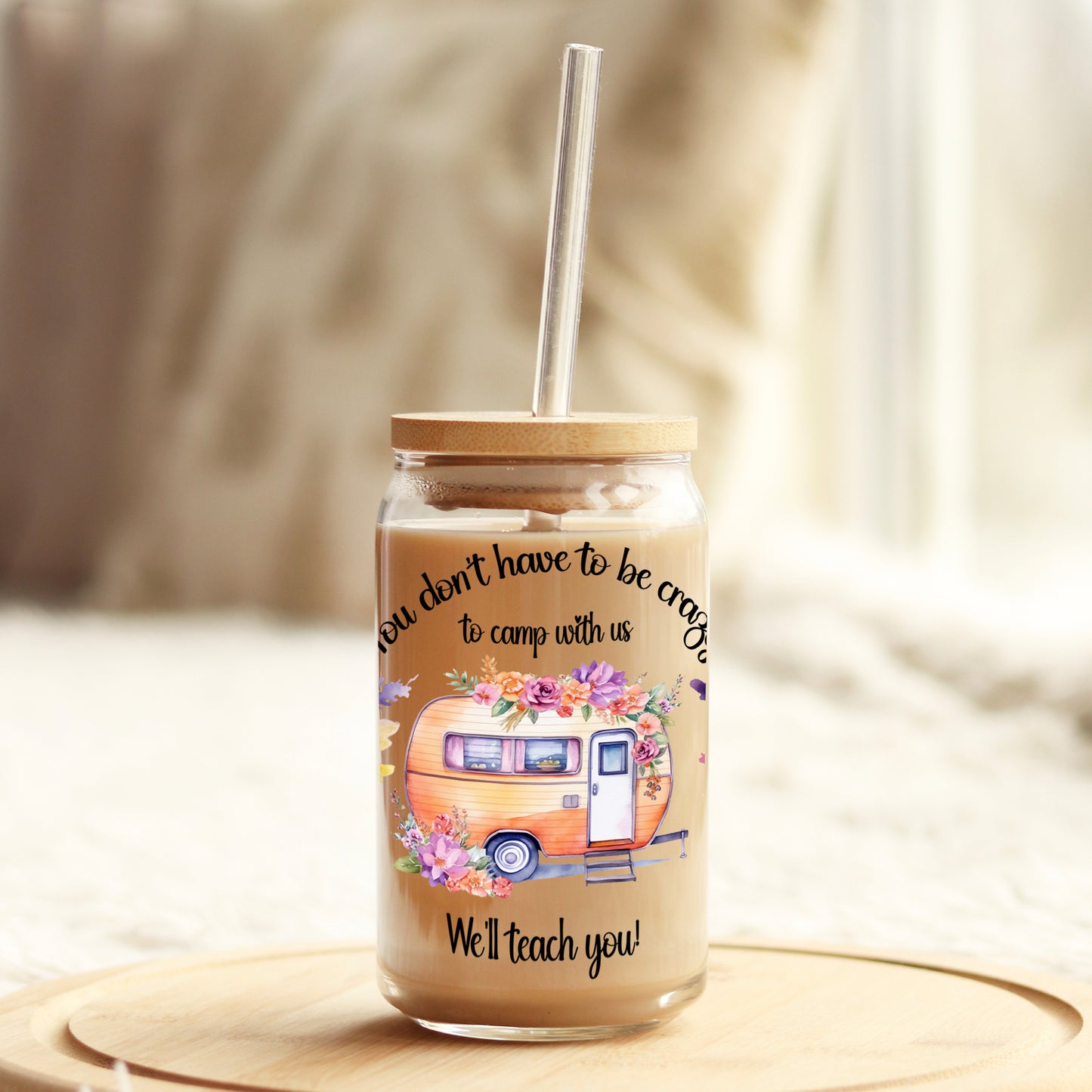 You Don't Have to be Crazy to Camp with Us 16oz Libbey Glass Can UV DTF or Sublimation Cup Wrap - Decal Transfer Description